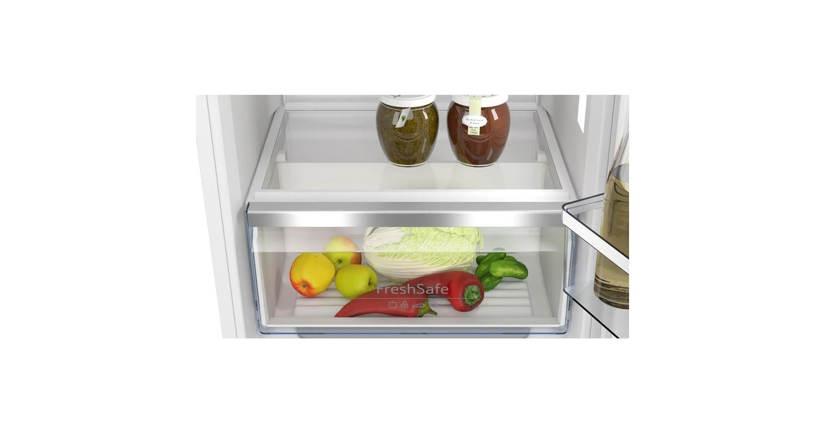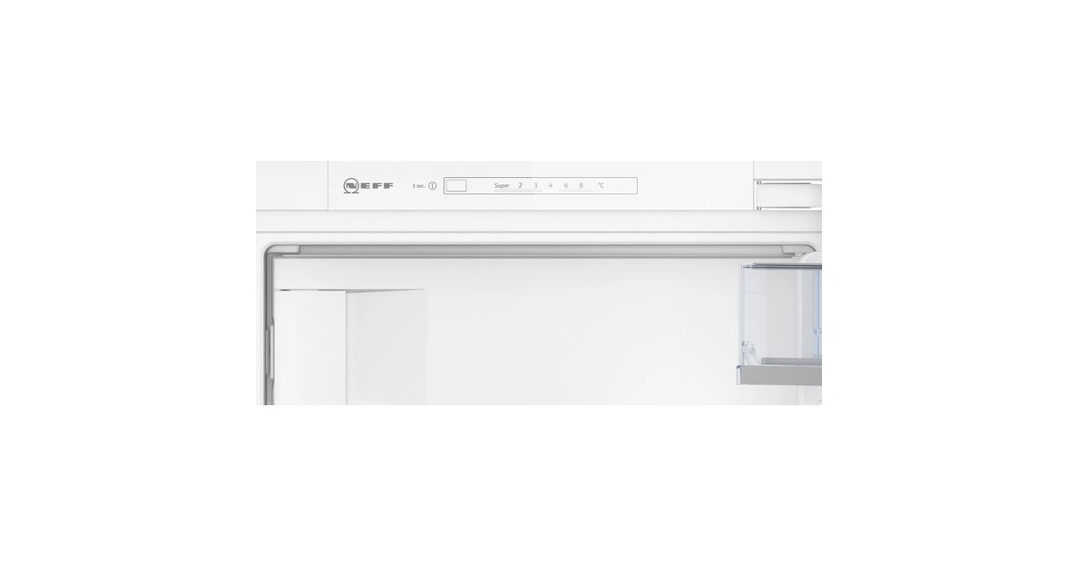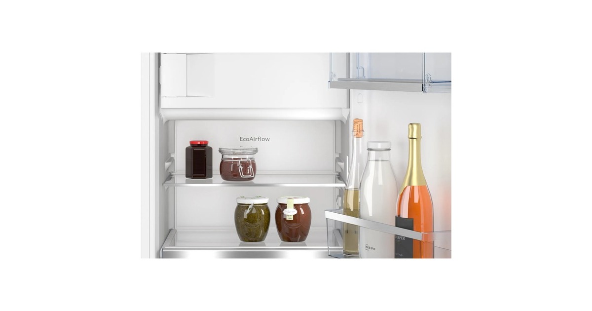 Der Einbaukühlschrank Neff KI2222FE0 stellt einen Gesamtnutzinhalt von 119 Litern für die Lagerung frischer Lebensmittel zur Verfügung und lässt sich perfekt in Nischen mit einer Höhe von 880 mm integrieren. Ausgestattet ist er mit zwei Abstellflächen aus Sicherheitsglas, davon eine höhenverstellbar, einer FreshSafe Obst-/Gemüseschublade sowie zwei Türfächern. Eco Air Flow sorgt für konstante Luftzirkulation für optimale Temperaturen und gleichmäßiges Kühlen und die Abtauautomatik erleichtert die Reinigung und Pflege des Kühlraums. Das 4-Sterne-Gefrierfach mit Klappe stellt einen Nutzinhalt von 15 Litern für Gefriergut zur Verfügung und friert innerhalb von 24 Stunden bis zu 3 Kilogramm Lebensmittel ein. Mit einem Stromverbrauch von 144 kWh im Jahr ist der KI2222FE0 in die Energieeffizienzklasse E eingestuft.Art.-Nr.: 1869116