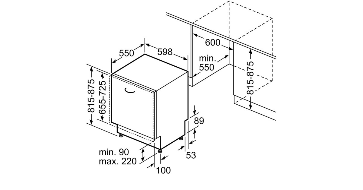 Höhenverstellbare Füße vorne max. : 60 mm |
