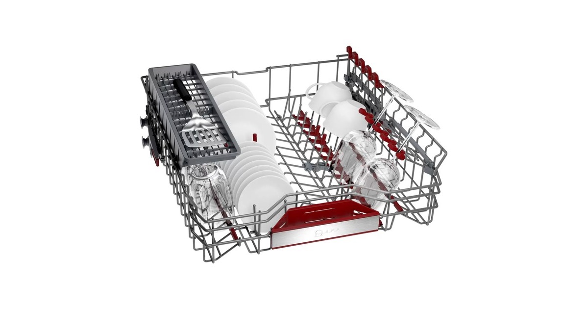 Komfortrollen, Korbstopper, Klappbare Tellerhaltereihen (6x), Tassenablage (2-teilig), Gläseranlagebügel |