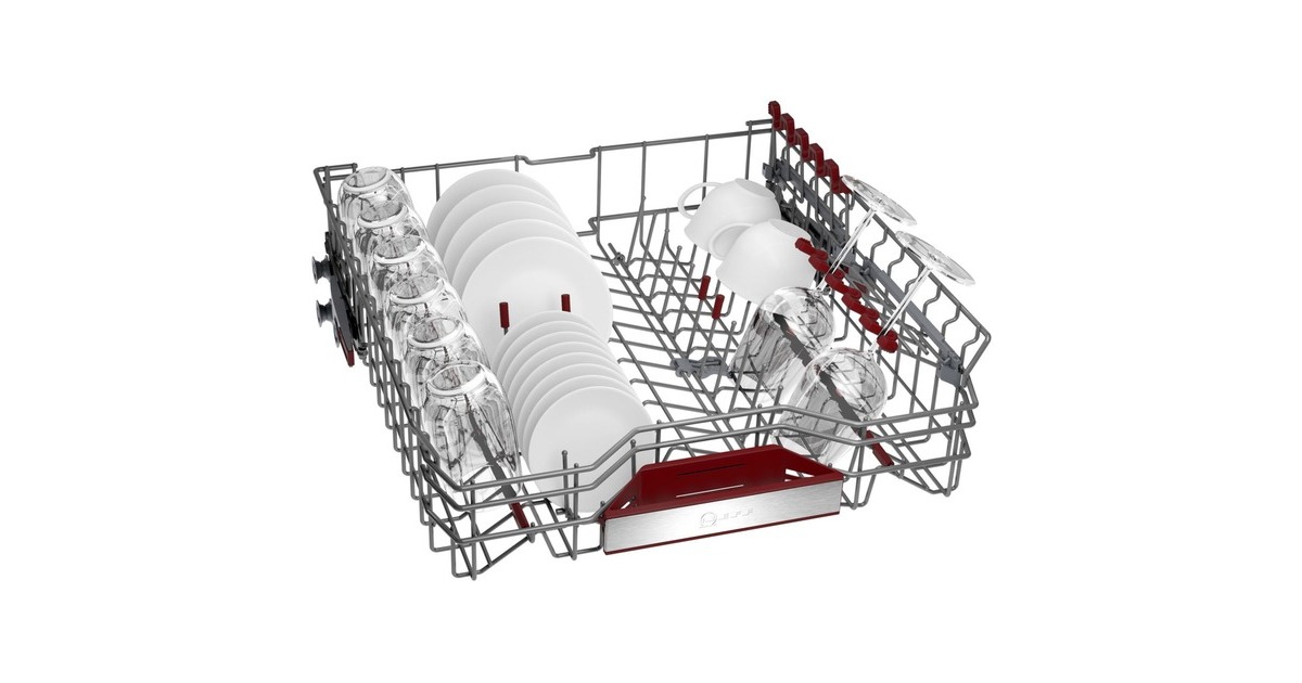 Höhenverstellbarer Korb mit RackMatic® (3-stufig), Leichtlaufrollen, farbige Anti-Rutsch-Beschichtung, 6x Klappbare Tellerhaltereihen, Tassenablage (2-teilig) |