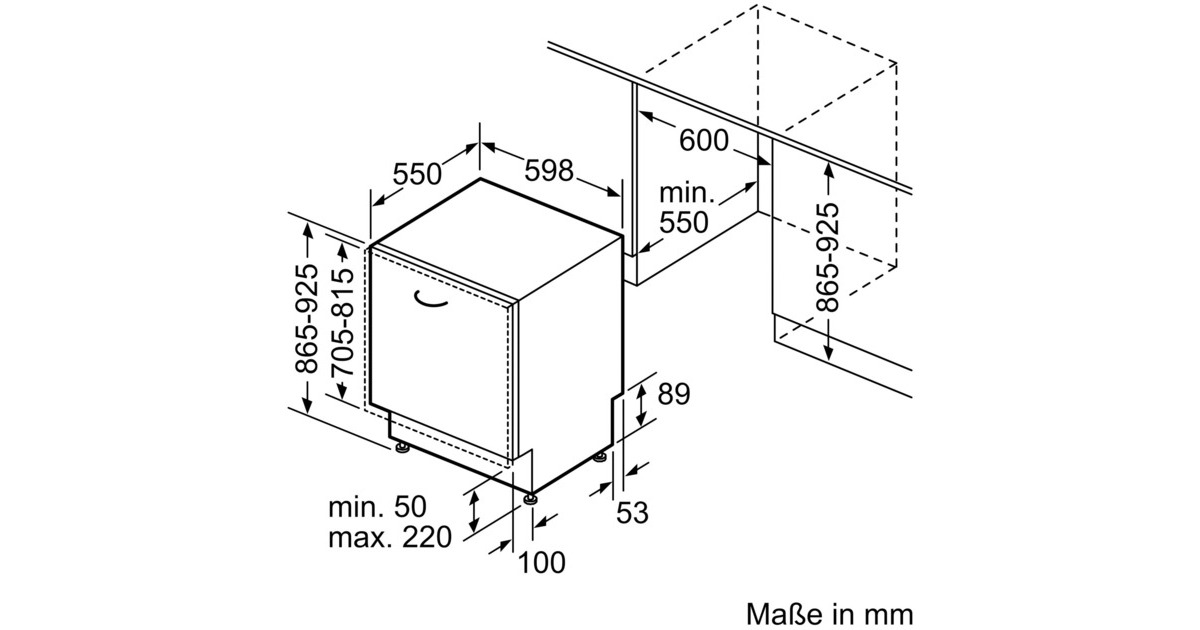 Höhenverstellbare Füße vorne max. : 60 mm |