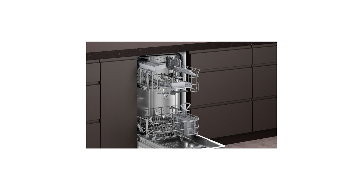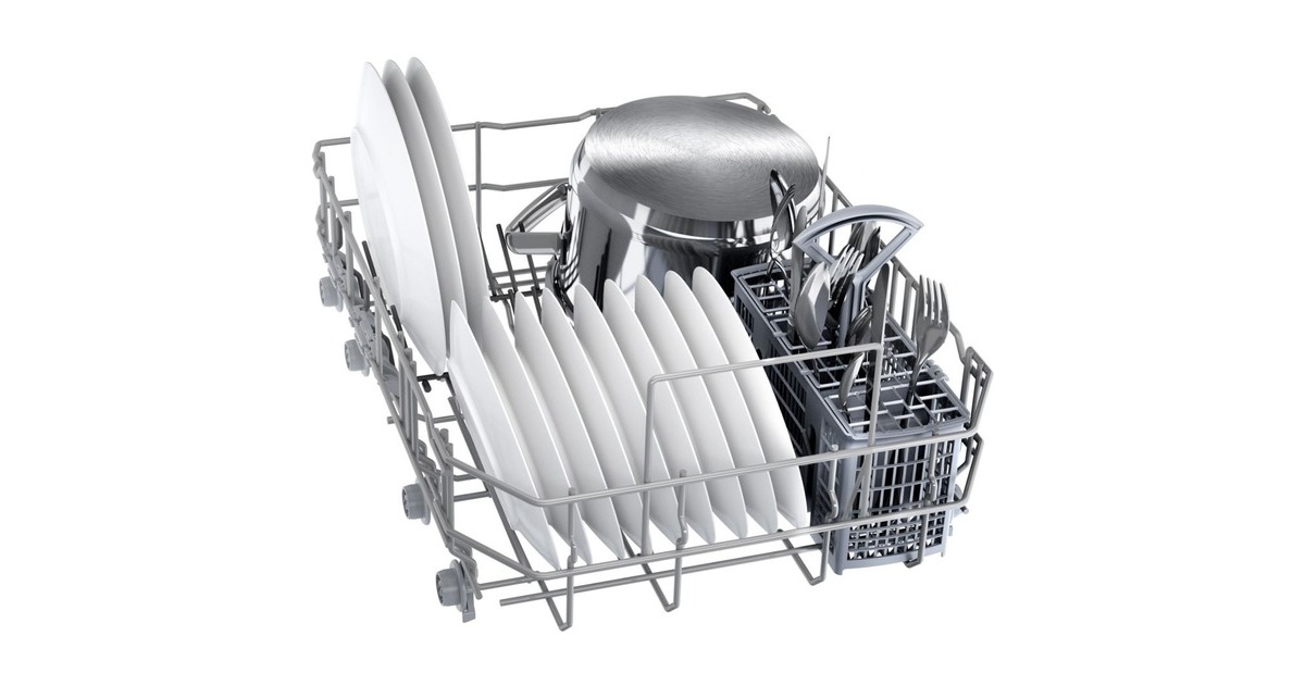 höhenverstellbarer Oberkorb, 2 Tassenablagen mit weicher Silikon Beschichtung, Besteckablage |