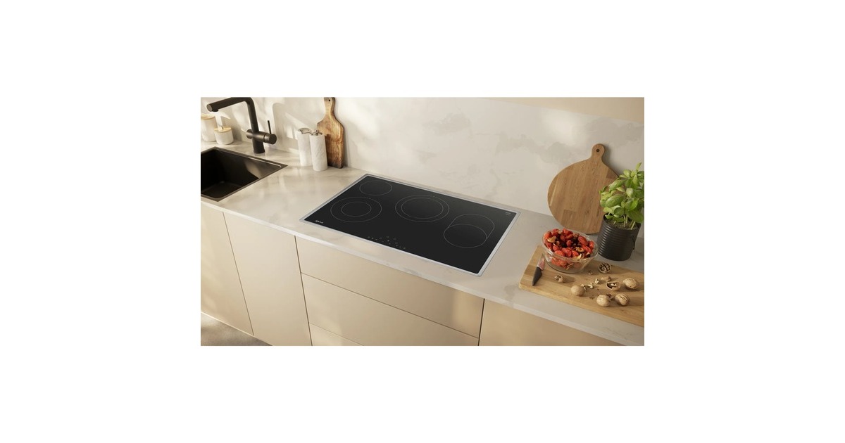 Das autarke Elektrokochfeld T18SDH9L0 von Neff stellt vier Kochzonendavon zwei mit PowerBoost-Funktion, mit 17 Leistungsstufen zum Kochen, Braten und Dünsten zur Verfügung. Eine zuschaltbare Bräterzone sowie zwei Zweikreiszonen mit Booster für großes Brat- und Kochgeschirr sind ebenfalls vorhanden. Das T18SDH9L0 lässt sich einfach und intuitiv mittels TouchControl steuern. Der integrierte Timer hält die Zeit im Blick, wenn man etwas auf den Punkt kochen oder backen möchte. In puncto Sicherheit überzeugt das T18SDH9L0 mit einer Restwärmeanzeige, einer Kindersicherung und einer Sicherheits-Zeitabschaltung.Art.-Nr.: 100039186