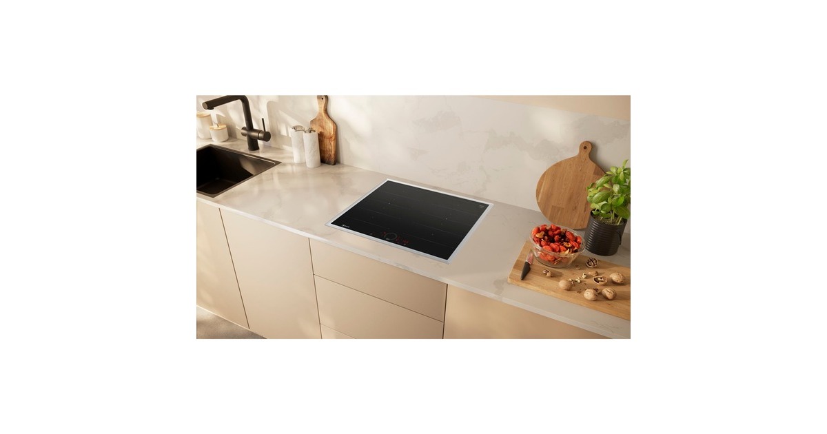 Das autarke Induktionskochfeld T66SHX4L0 von Neff stellt vier Kochzonen mit 17 Leistungsstufen und PowerBoost-Funktion zum Kochen, Braten und Dünsten zur Verfügung. Dank Flex Induction kann man sich auf dem Kochfeld so richtig austoben: Die Kochzonen lass sich flexibel zu einer gleichmäßig erhitzten Oberfläche verbinden. Das Kochfeld erkennt sofort Größe, Form und Position des Kochgeschirrs, verbindet oder trennt die Flexzonen automatisch und bringt die Temperatur nur dorthin, wo sie benötigt wird. Der Bratsensor überwacht kontinuierlich die Pfannentemperatur auf fünf präzisen Stufen, um Anbrennen zu verhindern. Dank der innovativen TwistTouch-Steuerung lässt sich mit einem Tippen oder einer Finger-Drehung entlang des virtuellen TwistTouch-Rings alles direkt und schnell einstellen, was man zum Kochen benötigt. Das T66SHX4L0 lässt sich zudem smart via Home Connect steuern und in Kombination mit einer entsprechenden Dunstabzugshaube passt sich diese automatisch dem Kochfeld an. In puncto Sicherheit überzeugt das T66SHX4L0 darüber hinaus mit einer Restwärmeanzeige, einer Kindersicherung und einer Sicherheits-Zeitabschaltung.Art.-Nr.: 100020442