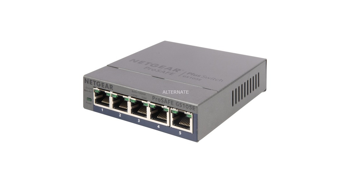 Der Netgear GS105E v2 ist ein Prosafe-Plus-Switch mit 5-Ports. Er ermöglicht eine einfache Aufrüstung der bestehenden Netzwerke auf Übertragungsgeschwindigkeiten von 1000 MBit/s über Cat.5-Kabel. Die fünf 1000-BASE-T-Vollduplex-Ports des GS105E erhöhen drastisch die Performance des Netzwerkes. Der GS105E v2 kann sowohl in herkömmlichen Fast-Ethernet- als auch in Gigabit-Netzen eingesetzt werden. Er eignet sich besonders als Desktopgerät, da er lüfterlos ist.Art.-Nr.: 1134444