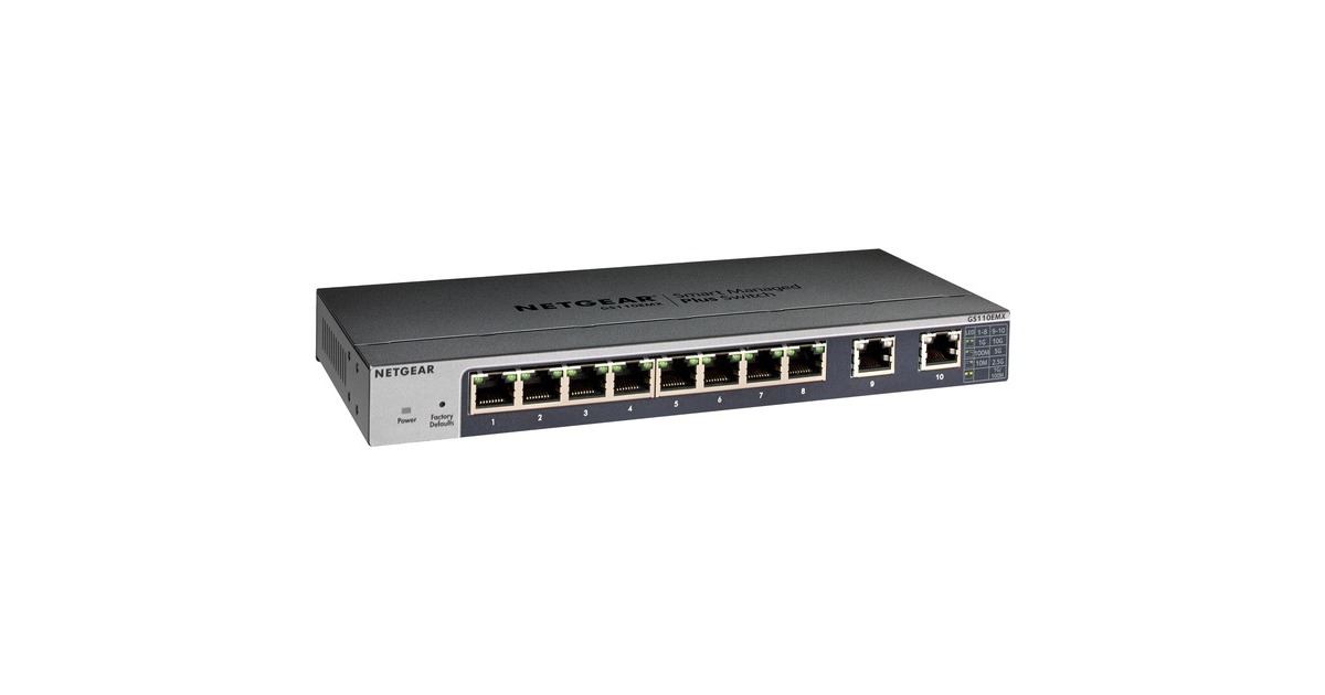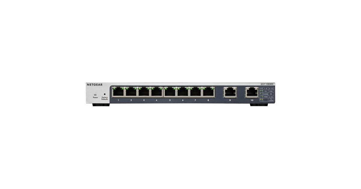 Der GS110MX und der GS110EMX sind ausgestattet mit acht Gigabit-Ethernet-Ports und zwei Uplink 10-Gigabit/MultiGigabit-Ports (5-Speed), die entweder 100-Megabit-, 1-Gigabit-, 2,5-Gigabit, 5-Gigabit- oder 10-Gigabit-Konnektivität liefern. Die beiden Uplink-Ports erkennen automatisch, welche Geschwindigkeit vom angeschlossenen Gerät benötigt wird und stellen diese zur Verfügung. Darüber hinaus können diese beiden Multi-Speed-Switch-Ports mit regulären Cat5E- Ethernet-Kabeln angeschlossen werden, ohne auf Cat6-Verkabelung umrüsten zu müssen. Dies spart Kosten und Aufwand für die Verkabelung.Art.-Nr.: 1391058
