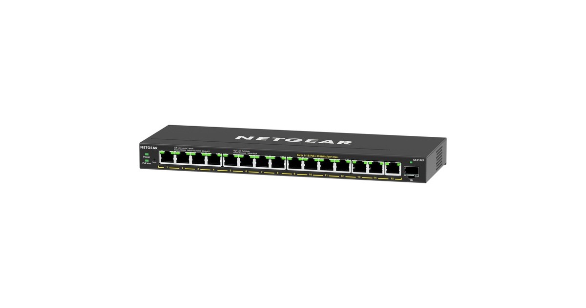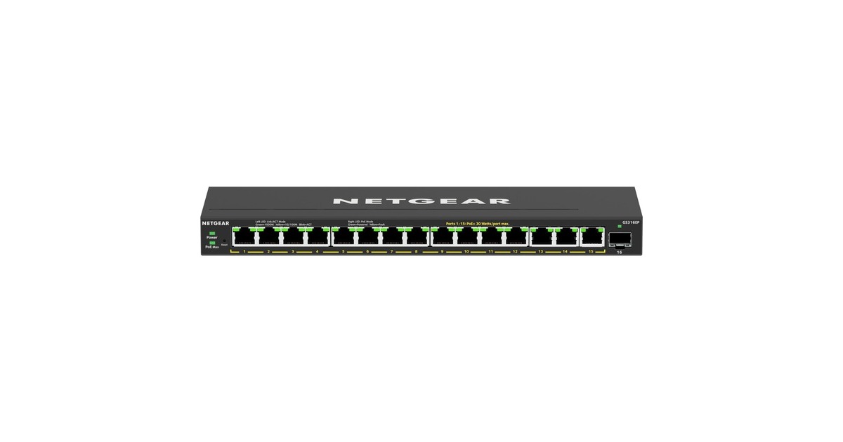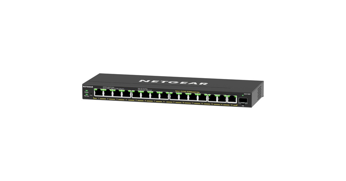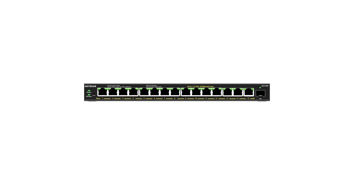 Der GS316EP Plug-and-Play Plus Switch mit grundlegenden Netzwerkverwaltungsfunktionen und PoE+-Unterstützung sorgt mit 15 Ports für insgesamt 180W Leistung zur Stromversorgung aller Arten von PoE-Geräten mit einer einzigen Leitung, für Bereitstellung von Strom und Netzwerkkonnektivität für PoE+-Geräte wie Wireless Access Points, IP-Kameras, VoIP-Telefone, Zugangsgesteuerte Sicherheits-Türschlösser oder andere IoT PoE-betriebene Geräte.Art.-Nr.: 1723092| Abmessungen | Breite: 286 mm x Höhe: 27 mm x Tiefe/Länge: 102 mm |