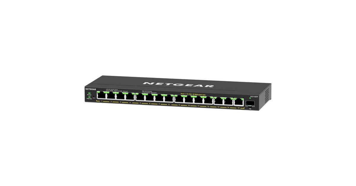 | Stromversorgung | Netzteilanschluss, PoE Gesamt-Budget: 231 W, max. PoE Versorgung pro Port: 15 W |