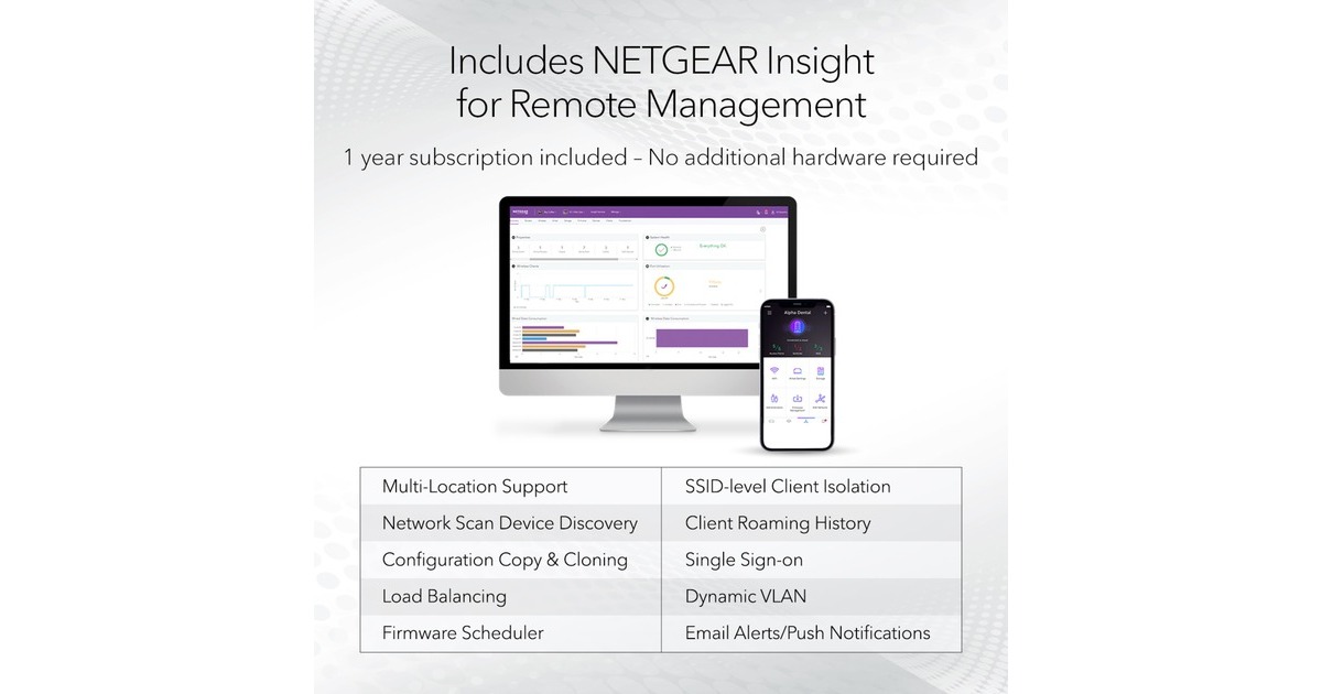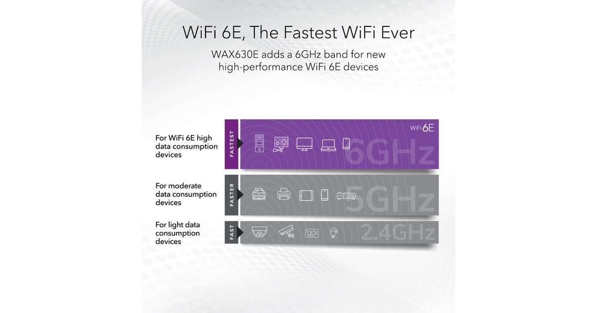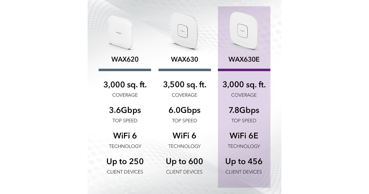 Der Netgear Insight Managed Wireless Access Point WAX630E ist ein Tri-Band 4x4 WiFi 6E Wireless Access Point für Unternehmen mit überlegener Dichte und Abdeckung und zentraler Cloud-Verwaltung. WiFi 6E Tri-Band AX6000 Geschwindigkeit unterstützt in Verbindung mit der MU-MIMO Technologie (Up- & Downstream), Beamforming+ und OFDMA bis zu 250 simultane Clients