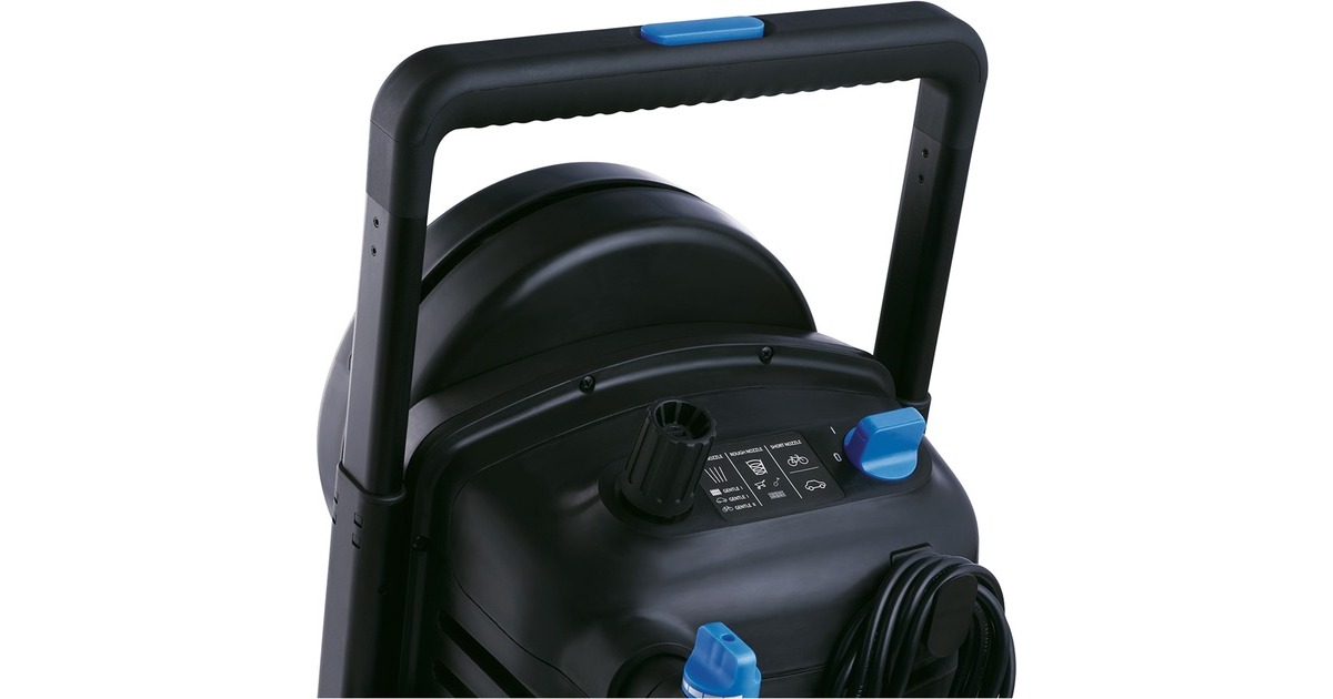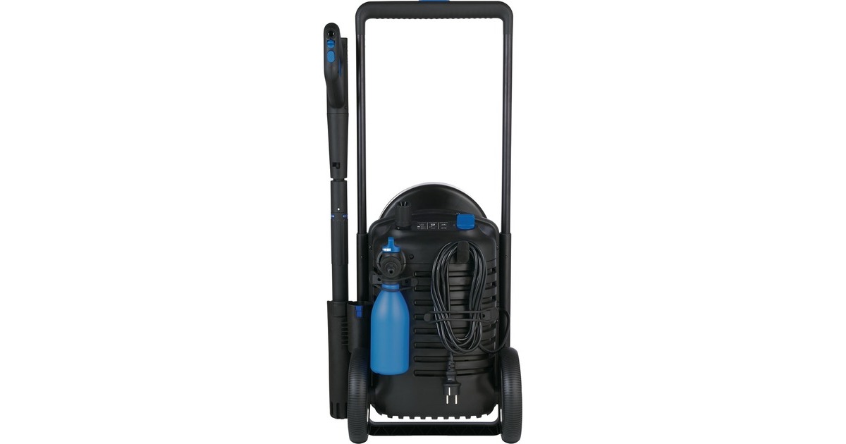 Netzkabel-Aufwicklung, Schlauchtrommel, Fach für Düsen, integrierte Lanzenhalterung |