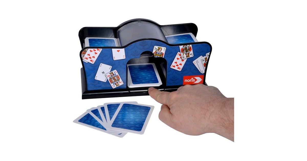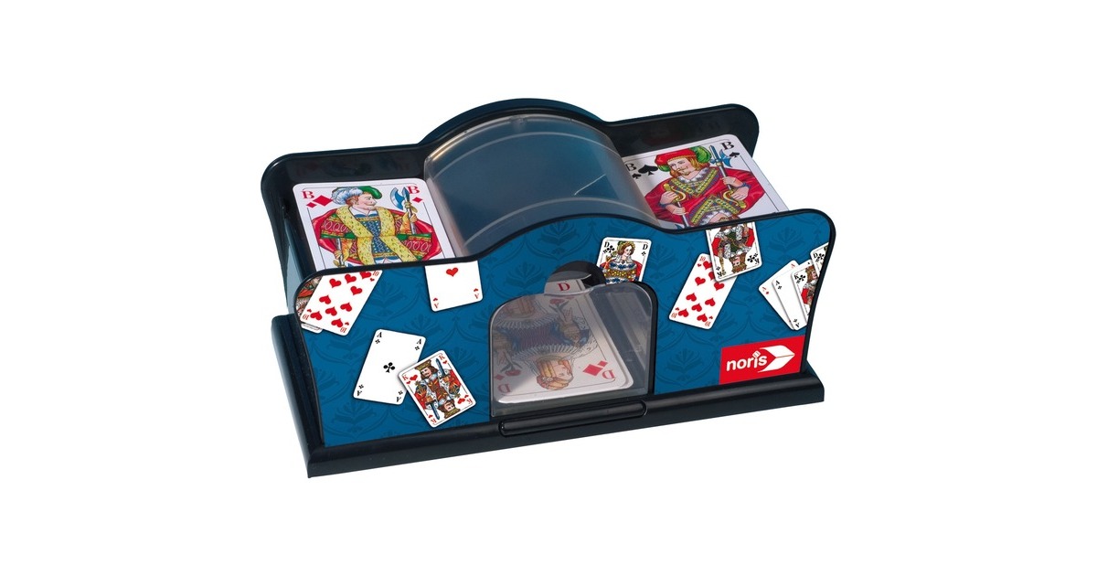 Kartenspielen ist bei vielen sehr beliebt. Doch das Mischen der Karten ist für viele Spieler ein Problem. Mit der elektrischen Kartenmischmaschine werden die Karten perfekt gemischt und es kann nicht geschummelt werden. Die Karten rechts und links auflegen, ein Knopfdruck und die gemischten Karten unten aus dem Schub wieder herausholen.Art.-Nr.: 1231406