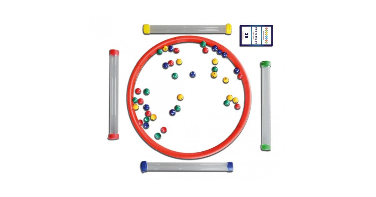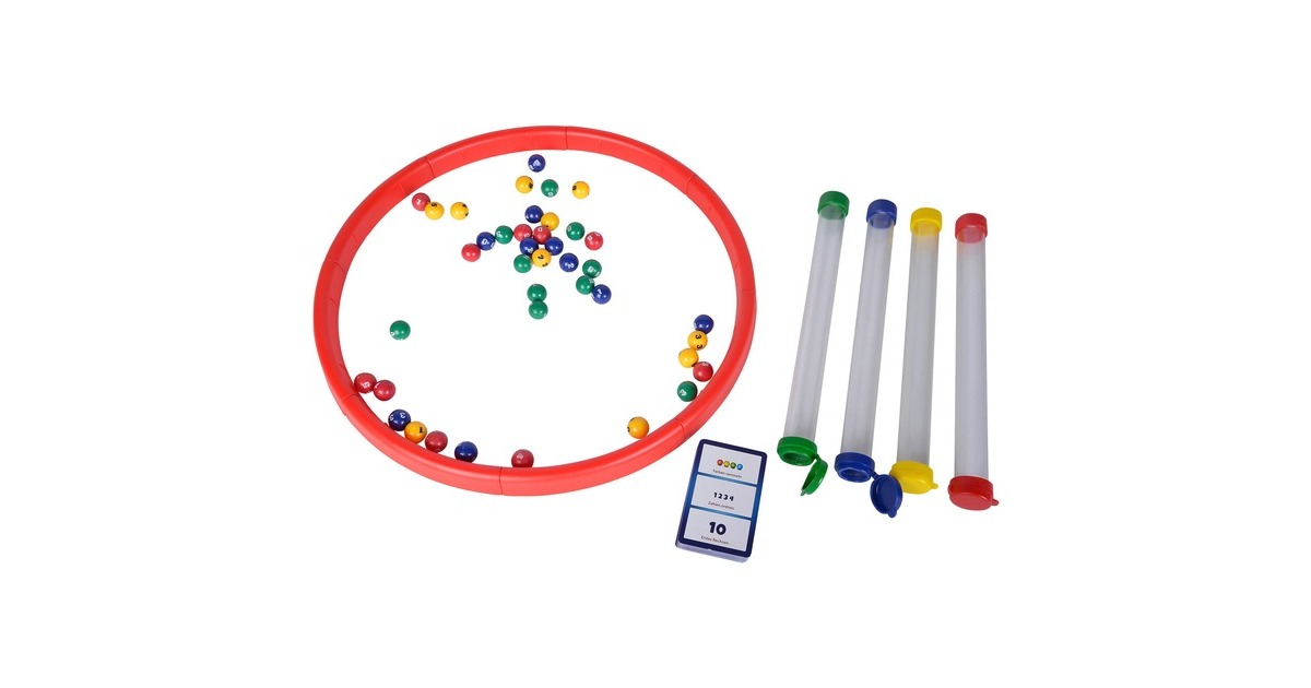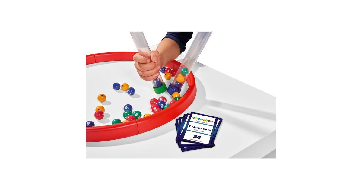 Jede Menge Action gibt es bei dem Spiel "Kugelblitz"! Beim rasanten Kugel-Wettbewerb versuchen die Spieler mit einer Röhre Murmeln in einer bestimmten Reihenfolge einzusammeln. Die Kugeln haben verschieden Farben und Nummern aufgedruckt, Spielkarten geben die Aufgabe vor. Drei verschiedene Schwierigkeitsgrade bringen Klein und Groß bei diesem Spiel mit Lern-Effekt mächtig ins Schwitzen! Bei Stufe eins gilt es die bunten Kugeln in der richtigen Farb-Reihenfolge aufzusammeln, bei der zweiten Schwierigkeitsstufe sind die auf den Murmeln aufgedruckten Zahlen ausschlaggebend. Richtig anspruchsvoll wird es, wenn die Spielkarten Rechenaufgaben zeigen und die Ergebnisse dann mit den Murmeln aufgesammelt werden müssen.Art.-Nr.: 1652174