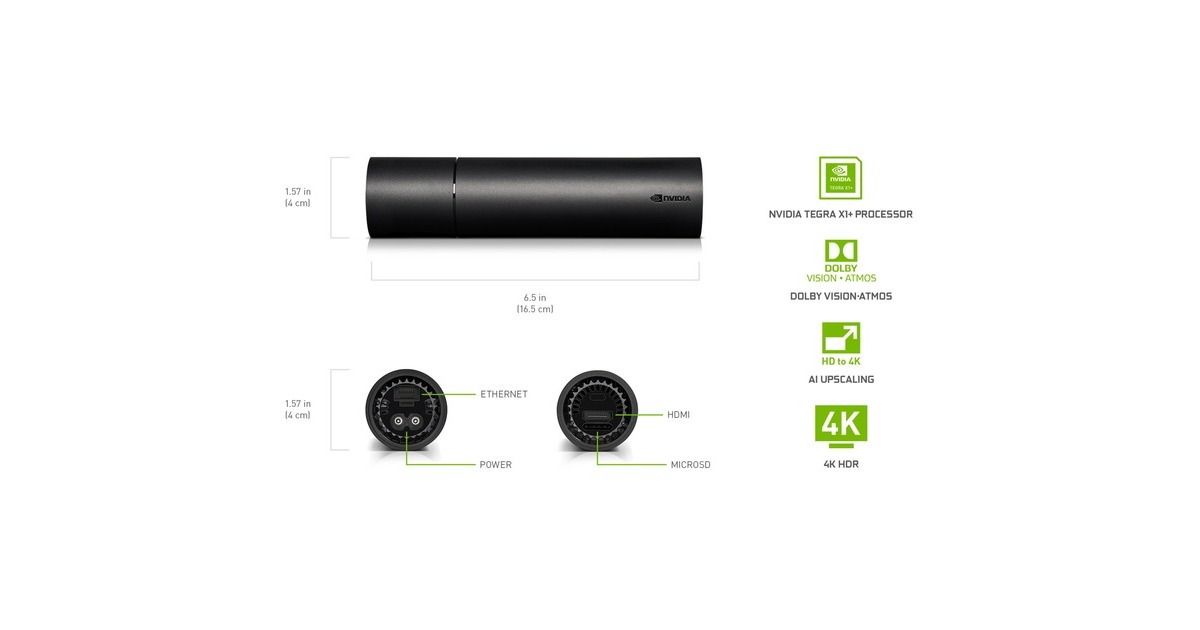 Mit Dolby Vision HDR und Audio mit Dolby Atmos-Surround-Sound erlebt man beeindruckende Grafiken und einen immersiveren Sound. Dank des NVIDIA Tegra X1+-Prozessors ist der SHIELD TV jetzt um bis zu 25 % schneller als die Vorgängergeneration. Der neue SHIELD TV ist kompakt, unauffällig und so konzipiert, dass er zusammen mit allen Kabeln unauffällig verborgen bleibt. Doch trotz der kompakten Abmessungen ist der SHIELD TV absolut leistungsstark. Es ist komplett ausgestattet mit Gigabit-Ethernet, Dual-Band-AC-Wi-Fi, integriertem Netzteil und einem microSD-Kartensteckplatz zur Speichererweiterung. Für Nutzer, die beeindruckende Leistung und ein Kinoerlebnis erwarten.