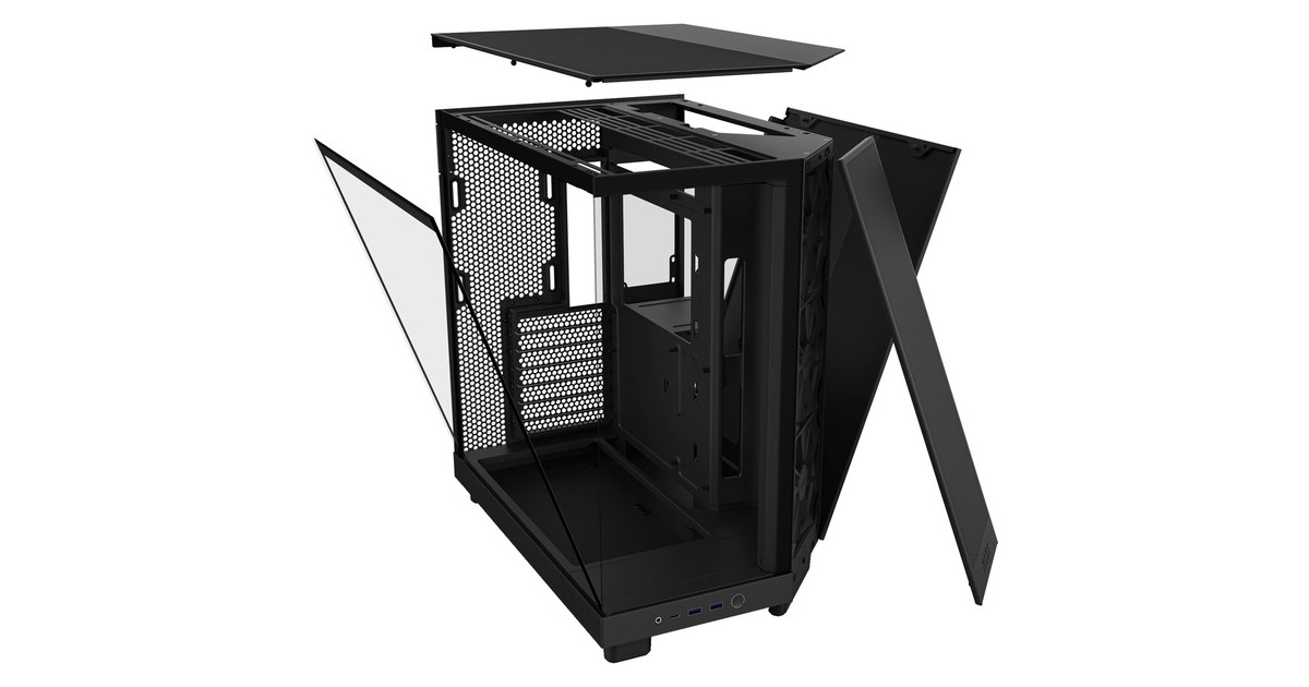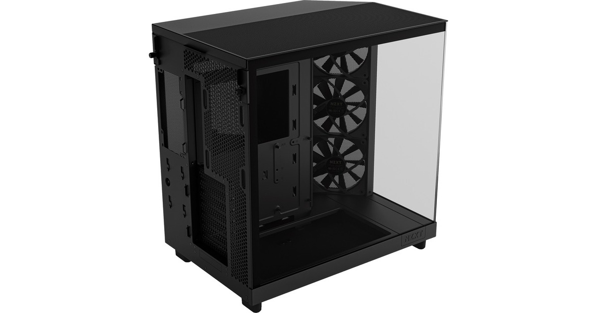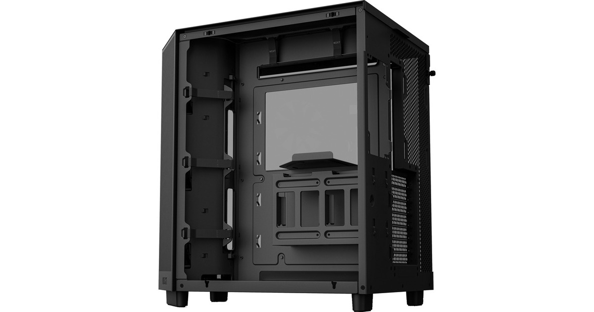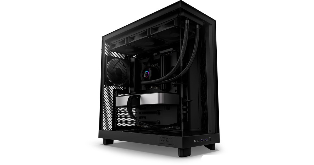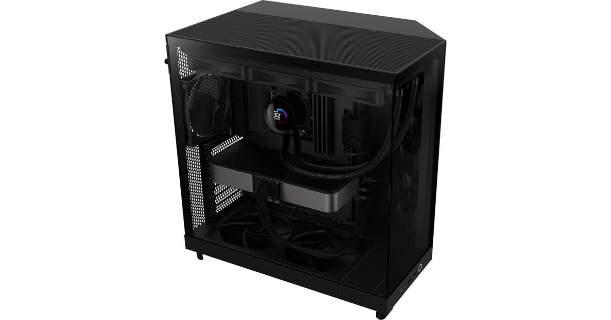 Der H6 Flow zeichnet sich durch ein innovatives, kompaktes Design aus, das die GPU-Kühlung mit einer strategisch angewinkelten vorderen Ecke. Das Panorama-Glas präsentiert stolz das Innere, während das Zwei-Kammer-Layout Platz für eine saubere Optik und bessere Kühlleistung sorgt. Die abgewinkelte vordere rechte Ecke mit 3 x 120mm-Lüftern zielt auf hitzeanfällige Komponenten. Unterstützt werden 2 x 140mm Lüfter unter der GPU die für optimale Kühlung sorgen, während perforierte Platten den Luftstrom verbessern. Front- und Seitenscheiben aus gehärtetem Glas bieten einen ungehinderten Blick auf die Komponenten, während das Zwei-Kammer Design das Netzteil versteckt.Art.-Nr.: 100001817