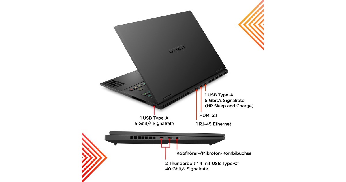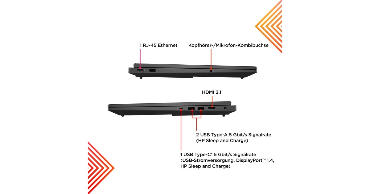 Der USB-C Port unterstützt DisplayPort 1.4, ein USB-A Port unterstützt HP Sleep and Charge |