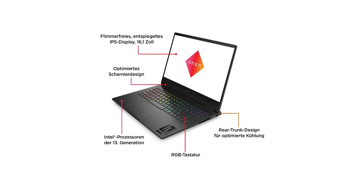 Mobiles Gaming mit tollem Design und großem Display: Das OMEN 16-wd0176ng wartet mit einem 40,9 cm (16,1") großen Bildschirm auf, der mit FHD (1920 x 1080 Pixel) auflöst, eine Wiederholrate von 144 Hz erreicht. Die Bilddarstellung übernimmt in diesem Gaming-Notebook eine NVIDIA GeForce RTX 4060 mit acht Gigabyte GDDR6-Videospeicher. Herzstück dieses mobilen Kraftpakets ist als Prozessor ein Intel® Core™ i7-13620H, der mit 32 Gigabyte DDR5-RAM und einer ein Terabyte großen M.2 PCIe-SSD kombiniert wurde. Ein Soundsystem von Bang & Olufsen sowie eine Tastatur mit RGB-Hintergrundbeleuchtung sorgen für beeindruckendes, stilvolles Gameplay. Dabei ist das Gerät über Wi-Fi 6E (802.11ax) oder Gigabit-LAN vernetzbar und hat Anschlüsse für Thunderbolt 4 und HDMI 2.1 an Bord.Art.-Nr.: 100003492