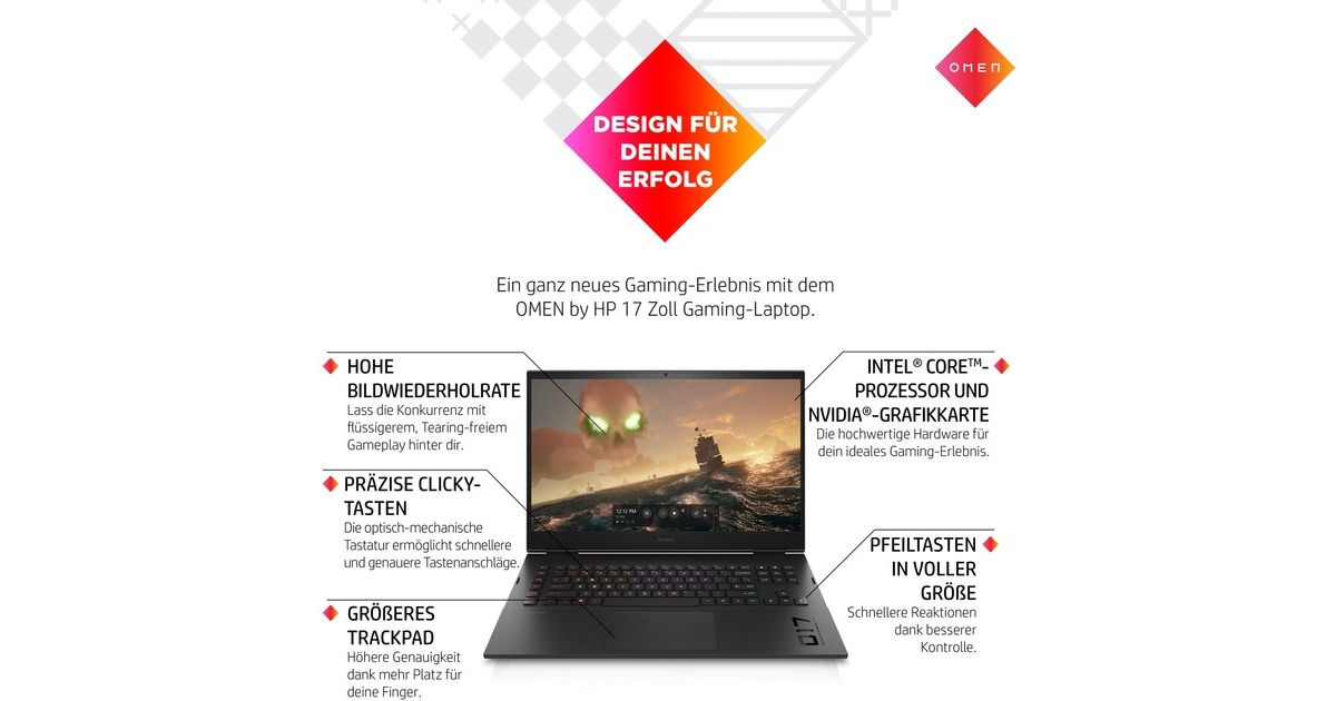 Eins für alles: Das OMEN 17-ck0177ng ist ein Notebook mit viel Rechenleistung für Office, Multimedia und Gaming-Anwendungen. Sein 43,9 cm (17,3") großes QHD IPS-Display (2560 x 1440 Pixel) bietet nicht nur ein Plus an Arbeitsfläche, sondern auch eine Helligkeit von 300 cd/m², 100% sRGB-Abdeckung und 165 Hz Wiederholrate. Der Bildschirm wird von einer NVIDIA GeForce RTX 3080 mit 16 Gigabyte GDDR6-Videospeicher befeuert. Der Unterbau stellt mit einem Intel® Core™ i7-11800H Achtkern-Prozessor, einer 512 Gigabyte großen M.2 PCIe-SSD und 16 Gigabyte DDR4-Arbeitsspeicher jede Menge Rechenpower bereit. Art.-Nr.: 1760806