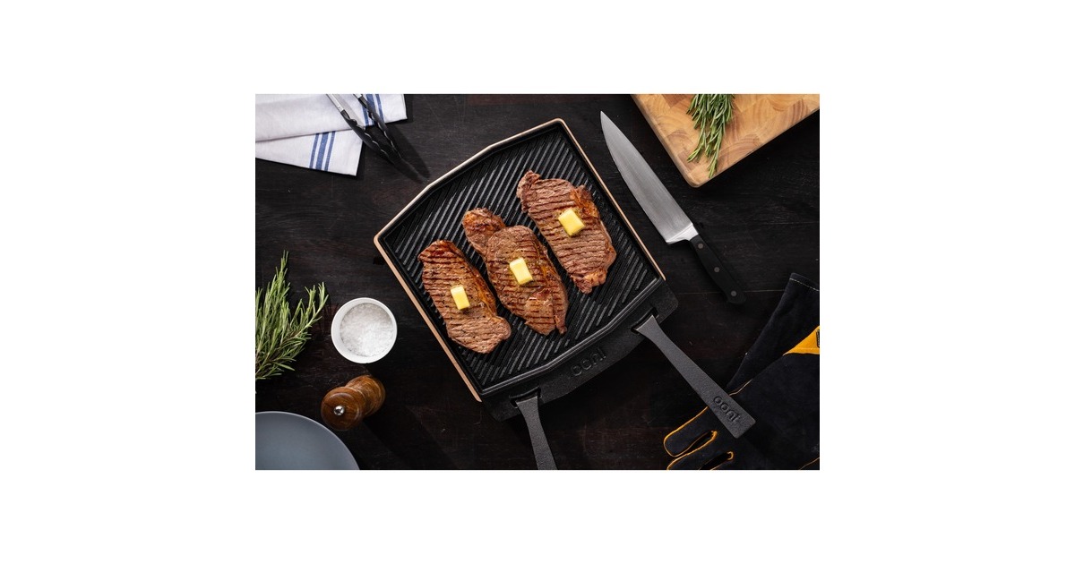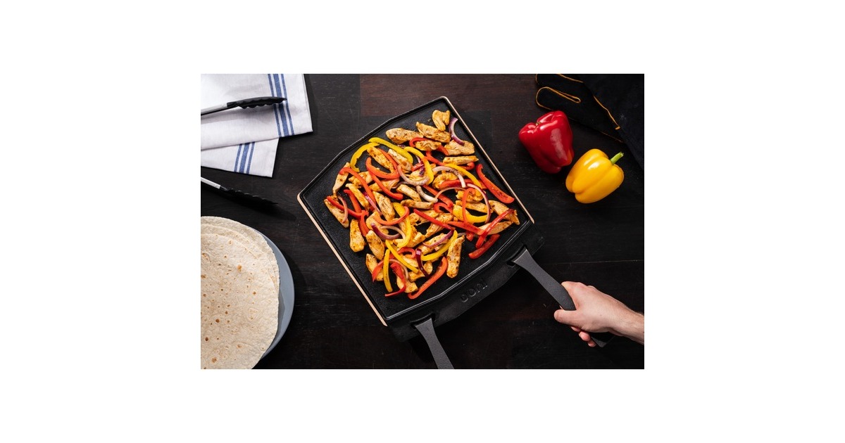 Die gusseiserne doppelseitige Grizzler-Platte von Ooni hat die perfekte Größe zur Verwendung mit allen Ooni-Pizzaöfen. Die vielseitige, glatte Sizzler-Seite eignet sich für Fajitas, Bacon oder Spiegeleier, die gerippte Seite zaubert die perfekten Grillstreifen auf's Fleisch. Das robuste Gusseisen nimmt die Hitze schnell auf und verteilt sie gleichmäßig auf die gesamte Fläche. Mit den speziell entworfenen abnehmbaren Griffen lässt sich die Ooni-Grizzler-Platte sicher in den Ofen hineinschieben und wieder aus dem Ofen herausholen. Auf dem mitgelieferten Buchenholz-Sockel kann man das fertige Gericht dann direkt am Tisch servieren. Der doppelseitige Grizzler eignet sich außerdem für Steaks, Fisch und Gemüse.Art.-Nr.: 1642451