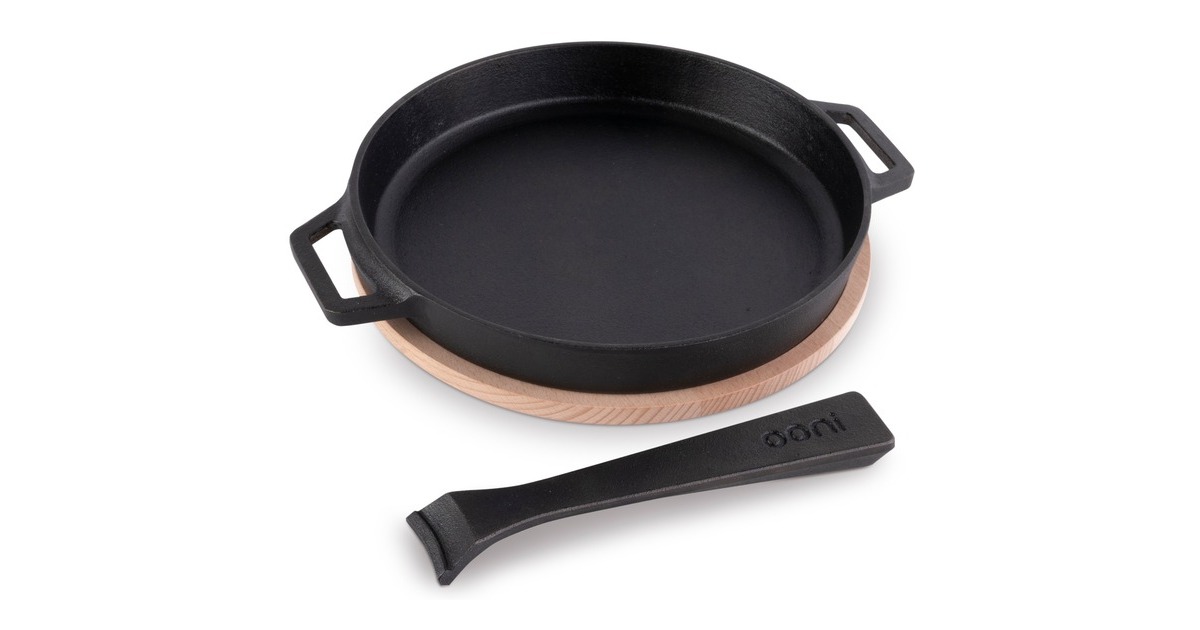 Die gusseiserne Skillet-Pfanne von Ooni hat die perfekte Größe zur Verwendung mit allen Ooni-Pizzaöfen. Die vielseitige Grillpfanne mit glatter Grillfläche eignet sich für Bacon oder Spiegeleier, Fisch, Meeresfrüchte oder Gemüse. Das robuste Gusseisen nimmt die Hitze schnell auf und verteilt sie gleichmäßig auf die gesamte Fläche. Mit dem speziell entworfenen abnehmbaren Griff lässt sich die Ooni-Skillet-Pfanne sicher in den Ofen hineinschieben und wieder aus dem Ofen herausholen. Auf dem mitgelieferten Buchenholz-Sockel kann man das fertige Gericht dann direkt am Tisch servieren. Übrigens eignet sie sich nicht nur für den Einsatz in den Ooni Pizzaöfen, sondern auch in offenen Kaminen oder auf einem normalen Kochfeld oder Herd.Art.-Nr.: 1642454