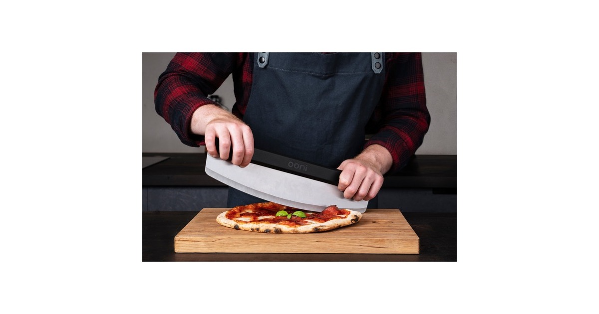 Mit dem langen, leicht gebogenen Ooni Pizzamesser kann man, ähnlich wie mit einem Wiegemesser, die heiße Steinofenpizza ganz einfach in mundgerechte Stücke schneiden. Dank des komfortablen Griffs geht das sogar mit einer Hand. Die ultra-scharfe Klinge ist aus rostfreiem Stahl gefertigt.Art.-Nr.: 1642522
