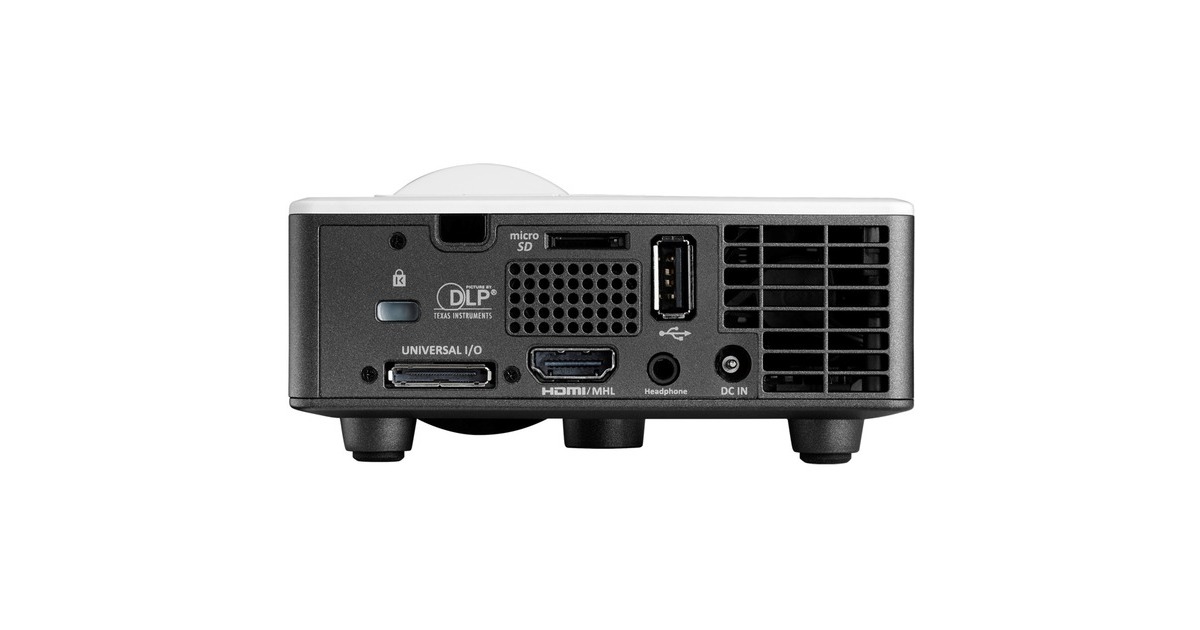 Der Optoma ML1050ST+ ist ein besonders kompakter LED-Kurzdistanzprojektor der sich ideal für Meetings, Präsentationen oder Filme unterwegs eignet. Mit nur 420 Gramm kann er nahezu überall eingepackt und mitgenommen werden. Mit einem eingebauten Mediaplayer, nativem Office Viewer, MicroSD Kartenslot und USB-Anschluss lassen sich in Sekundenschnelle zahlreiche Endgeräte mit dem ML1050ST+ verbinden. Art.-Nr.: 1615331