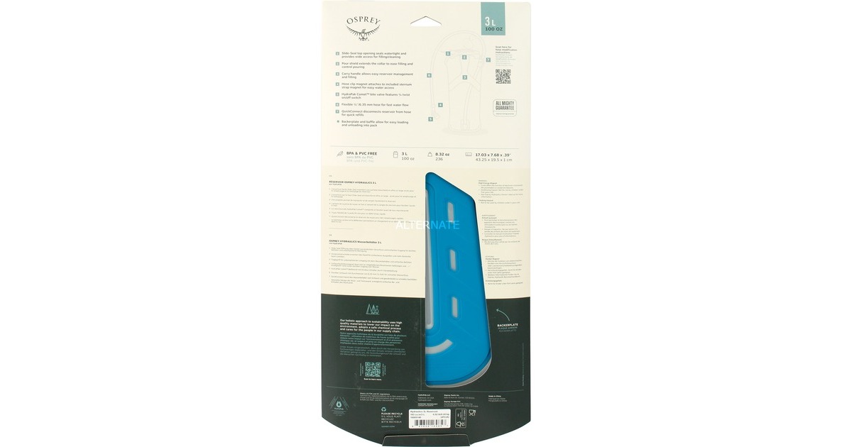 Die Hydraulics 3L Trinkblase von Osprey ist sehr stabil und lässt sich leicht bedienen, sie wird so zum unerlässlichen Zubehör, wenn man auf seinen Abenteuern Flüssigkeit braucht. Die Trinkblase wird zum Verschließen an der Öffnung einmal nach vorne gefaltet und dann mit dem Slide-Seal, einem Schiebe-Clip-Verschluss, verschlossen. Dank dieser Konstruktion lässt sich die Trinkblase einfach befüllen und entleeren und auch komplett reinigen. Die einzigartige anatomisch geformte Osprey Hydraulics Rückenplatte sorgt für Stabilität und ein flaches Profil, damit die Trinkblase leicht im Rucksack verschwindet und wieder herausgeholt werden kann. Mit dem magnetischen Beißventil ist der Schlauch perfekt verstaut und das Getränk immer zugänglich. Wenn es nicht in Gebrauch ist, verfügt das Beißventil über ein einfaches Drehverschluss-System. Die Trinkblase besteht aus robustem, aber leichtem TPU-Material, das sich für kochendes und gefrierendes Wasser eignet. Mit Hilfe des QuickConnect kann man sie herausnehmen, um sie zu befüllen, zu ersetzen oder zu säubern.Art.-Nr.: 1859679
