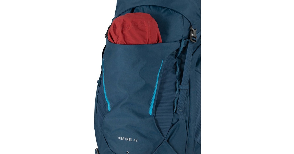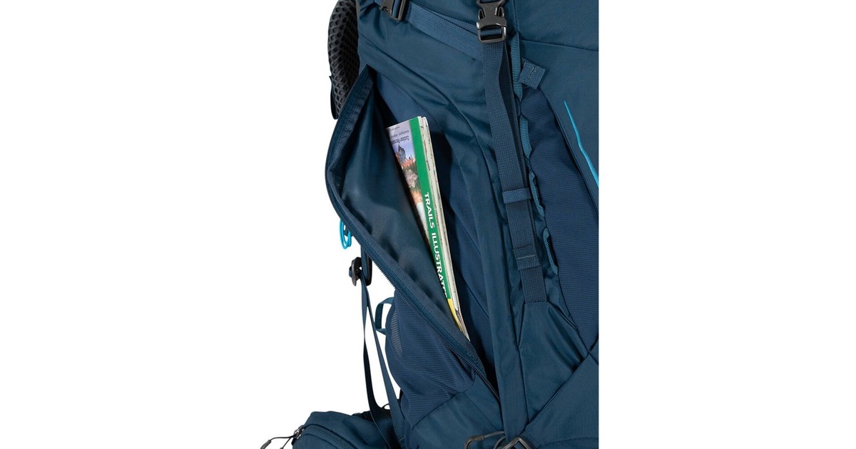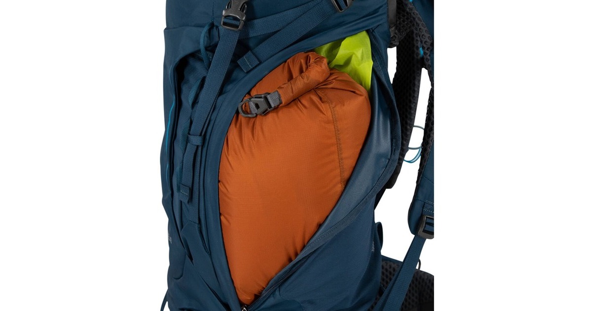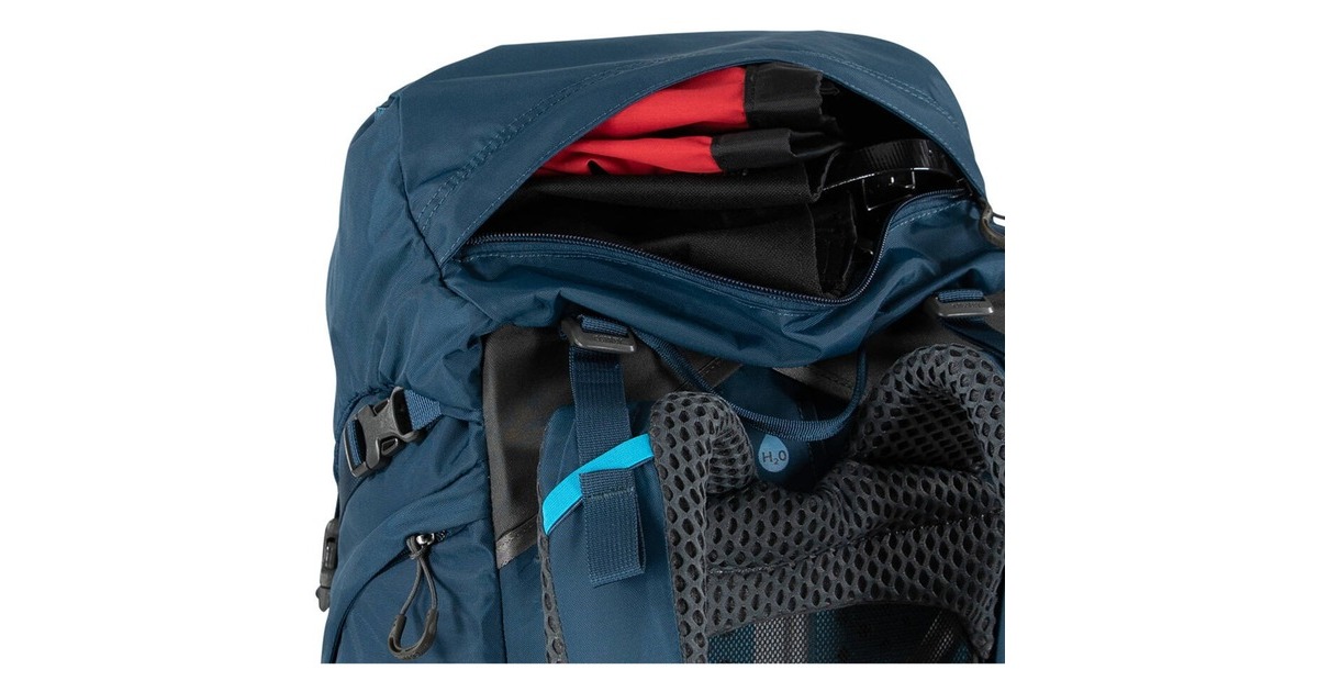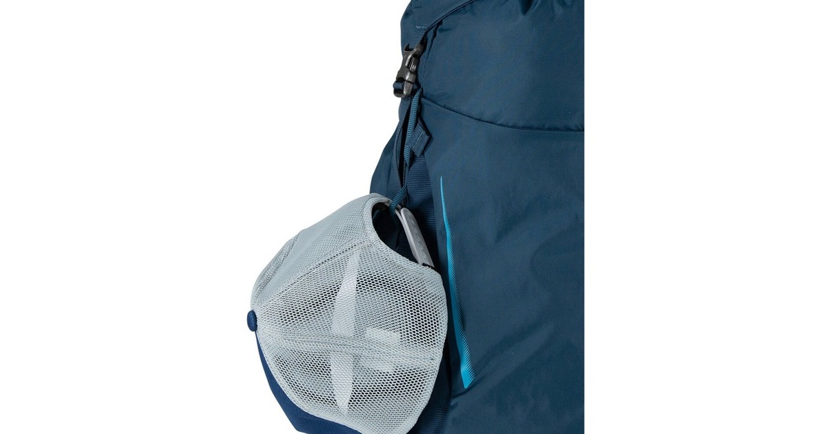 Frontfach, Seitenfach, Trinkflaschenhalter, Deckeltasche mit Reißverschluss, Mesh-Seitenfächer an den Außenseiten, Schlafsack-Tasche mit Reißverschluss, Reißverschluss-Taschen im Hüftgurt, Zugang zum Hauptfach über die Seite |
