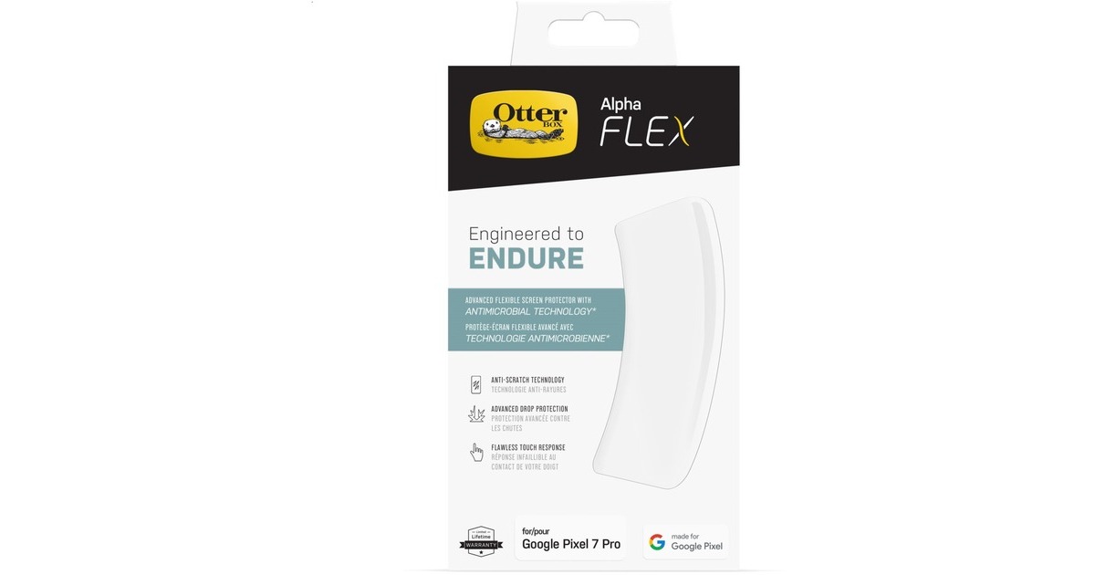 Die Alpha Flex Schutzfolie von Otterbox ist speziell auf das Google Pixel 7 Pro, inklusive dessen Aussparung, abgestimmt. Das bruchsichere Alpha Flex schützt den Touchscreen vor Kratzern oder Stößen und erhält dabei eine vollständige Touch-Funktion sowie die besondere Klarheit des Displays.Art.-Nr.: 1877918