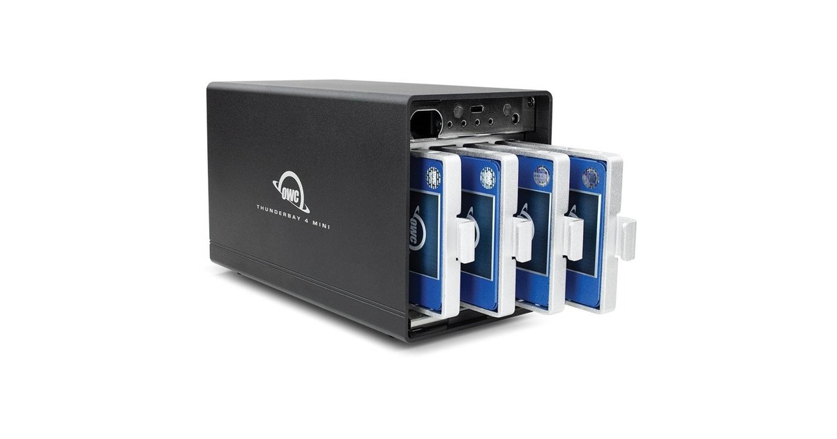 Das OWC ThunderBay 4 mini ist ein kompaktes Datenspeichergehäuse, das man mit 2,5-Zoll-HDDs oder SSDs bestücken kann. Das ThunderBay 4 mini bietet viel Leistung und Flexibilität, ist aber nur so lang wie ein Bleistift und besitzt ein geringes Gewicht. Das robuste, wärmeableitende Aluminiumgehäuse verfügt über zwei Thunderbolt 3-Anschlüsse (Thunderbolt 2/Thunderbolt abwärtskompatibel) für Geschwindigkeiten von bis zu 1556 MB/s. Damit stehen mehr als genug Bandbreite für private und geschäftliche Backups zur Verfügung - bis hin zu Audio-, Foto- und Videoformaten mit höchster Auflösung. Geschwindigkeit, Größe und Komfort - das OWC ThunderBay 4 mini bietet alles, was ein anspruchsvoller Workflow erfordert. Mit vier Laufwerkseinschüben kann man 2,5-Zoll-SSDs und -HDDs verschiedener Marken und Kapazitäten mischen oder kombinieren. Man verwendet gemischte Laufwerke unabhängig voneinander oder kombiniert Laufwerke als RAID (erfordert RAID-Einrichtungs- und -Verwaltungssoftware, wie z. B. OWC SoftRAID).Art.-Nr.: 1800629