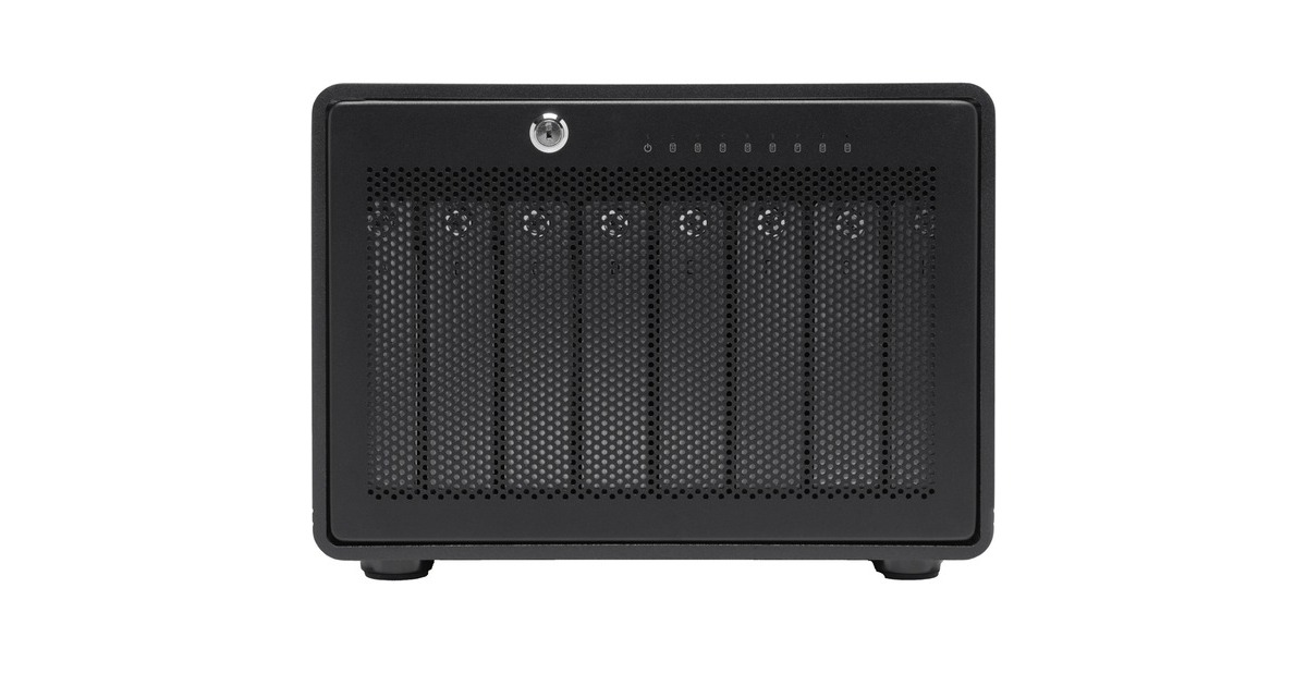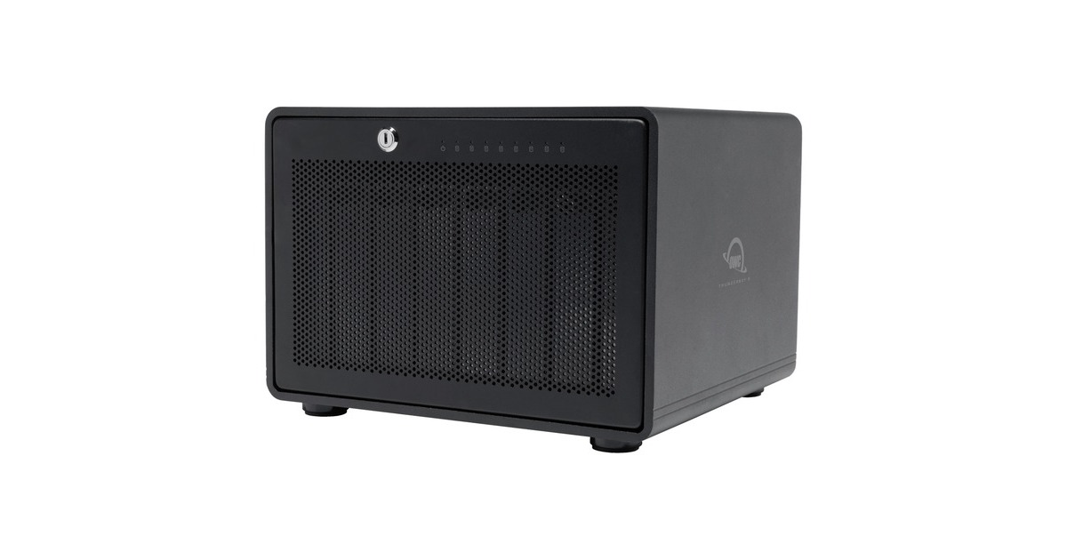Das OWC ThunderBay 8 bietet acht Laufwerksschächte für 2,5-Zoll- oder 3,5-Zoll-HDDs und/oder SSDs in beliebiger Kombination. Das ThunderBay 8 ist wie ein leistungsstarkes persönliches Rechenzentrum, das mehrere Konfigurationsoptionen bietet, um den ständig wachsenden Speicheranforderungen gerecht zu werden. Foto-, Film- und Videoredakteure können die Vorteile der Desktop-Speicherlösung mit der größten Kapazität nutzen, um den unersättlichen Speicherplatzhunger von RAW-, 4K-, Großformat- und VR-Workflows zu bewältigen. Mit Thunderbolt 3, das reale Übertragungsraten von bis zu 2586 MB/s bietet, und der Möglichkeit, acht SSDs oder HDDs zu nutzen, verfügt das robuste, praxiserprobte Aluminiumdesign der ThunderBay 8 über die nötige Leistung unter der Haube, um hohe Bandbreitenanforderungen zu bewältigen. Man kann sogar mehrere ThunderBay 8-Lösungen konfigurieren, die über mehrere Thunderbolt 3-Anschlüsse am Mac oder PC angeschlossen sind, um exponentielle Geschwindigkeitssteigerungen zu erzielen. Wie auch immer die Konfiguration aussieht, wenn man gegen eine Deadline anrennt, bringt einen das ThunderBay 8 auf die Siegerstraße. Wird noch mehr Speicherkapazität benötigt, kann man bis zu sechs dieser Kapazitätsriesen miteinander verbinden und erreicht so bis zu sagenhafte 768 TB. Jetzt kann man mit einer einheitlichen und zuverlässigen Speicherlösung riesige Mengen an Filmmaterial von mehreren Kameras aufnehmen oder umfangreiche Bibliotheken mit Produktionsarbeiten speichern. Dank der acht Hot-Swap-Laufwerksschächte der ThunderBay 8 kann man große Datensätze für jedes Projekt einfach organisieren. Unabhängig davon, ob man 2,5-Zoll- oder 3,5-Zoll-HDDs und/oder SSDs verwendet, werden die Laufwerke zur einfachen Identifizierung in alphabetisch beschriftete Einschübe montiert und mit einer Rändelschraube gesichert.Art.-Nr.: 1734039