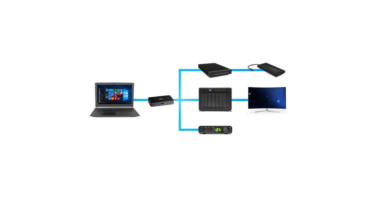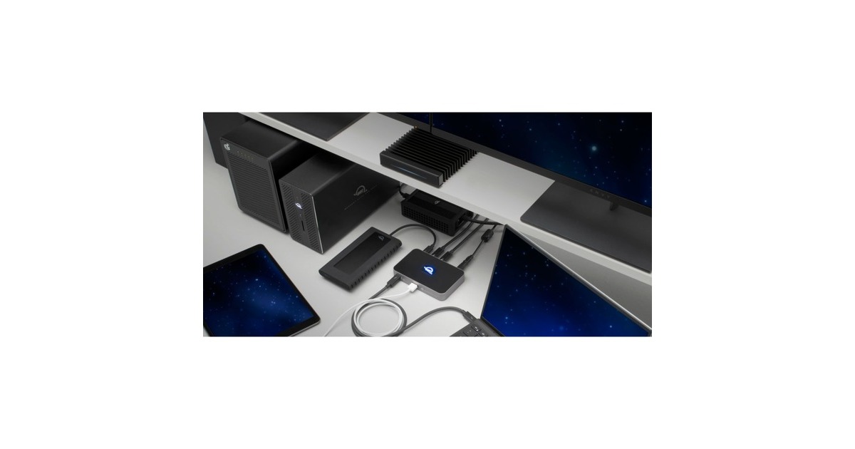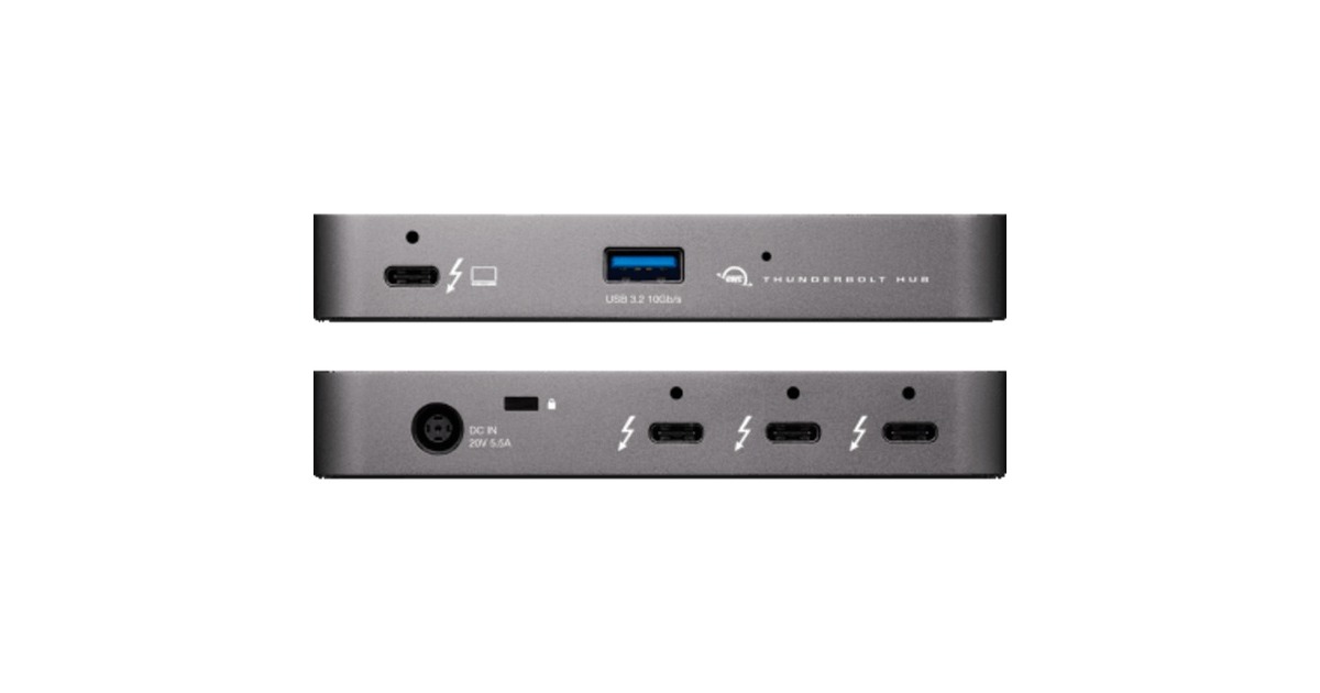 Das OWC Thunderbolt Hub beinhaltet gleich vier Thunderbolt 4 Ports, über welche man Displays mit einer Auflösung von 6K oder auch 8K betreiben kann - dank DaisyChain mit maximalen Flexibilität. Das Thunderbolt Hub besitzt einen USB-A 3.2 Gen2 (10 Gbit/s) Port für zusätzliche Peripherie- oder Speichergeräte. Mittels Power Delivery (PD) kann man angeschlossene Endgeräte mit bis zu 60 Watt aufladen - so benötigt man keine zusätzlichen Netzteile und ist vollständig ausgestattet.Art.-Nr.: 1697007