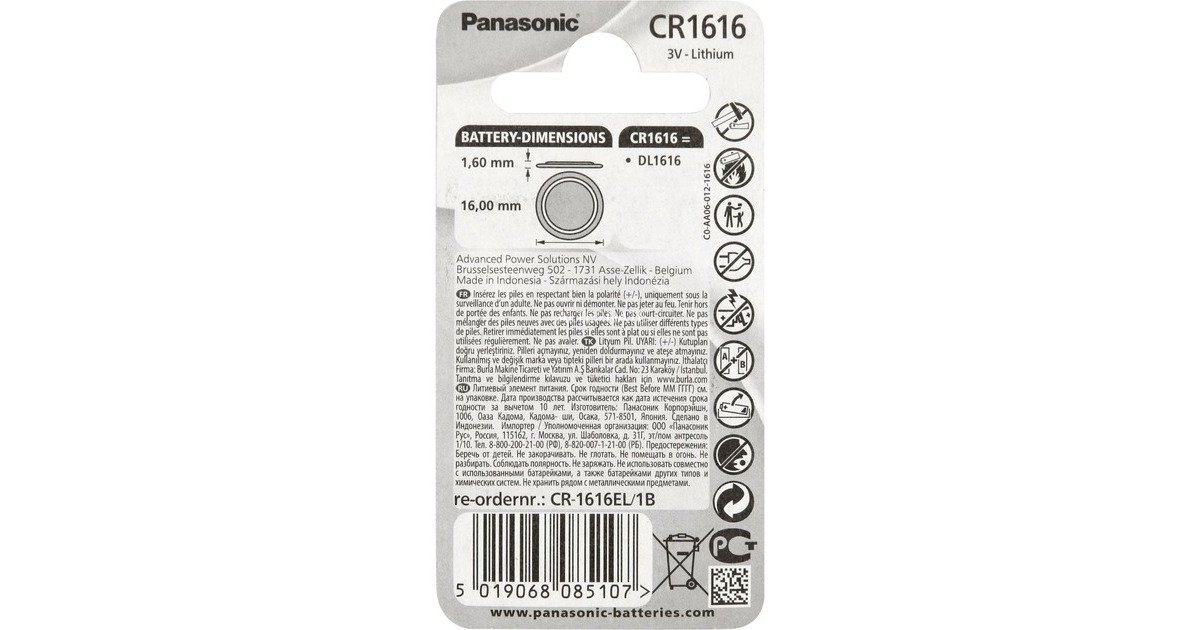 Die Panasonic CR1616 Knopfzellen bieten 3 Volt Spannung und versorgen Uhren, elektronisches Spielzeug und Taschenrechner mit Energie.Art.-Nr.: 1847215| Batterie | 1 Stück |