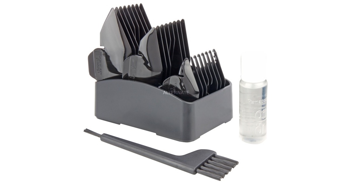 Anleitung, Kammaufsätze, Ladestation, Kammablage, Reinigungsbürste, Öl, Netzteil |