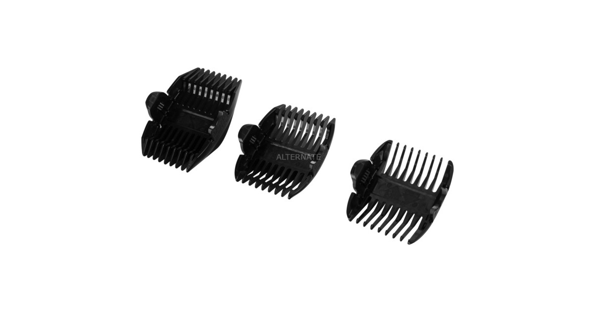 Ladestation, Kammablagefächer, 3 Kammaufsätze, Reinigungsbürste, Netzteil |