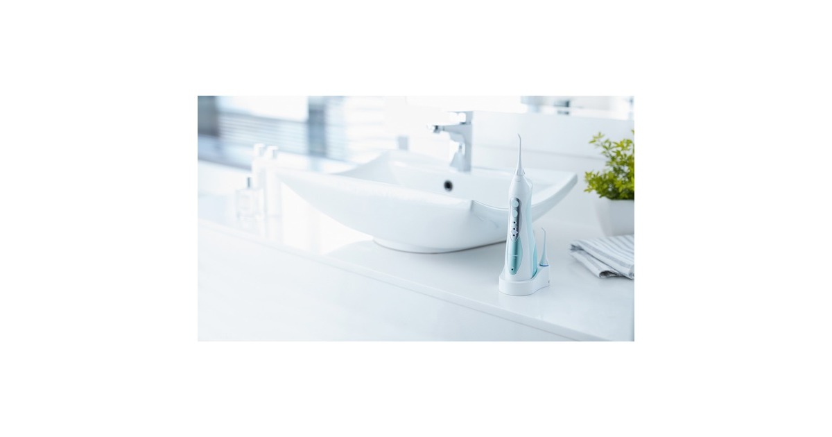 Die Panasonic EW1313 Munddusche in der Trendfarbe mintgrün löst Speisereste aus den Zahnzwischenräumen und spült Plaque aus den Zahnfleischtaschen heraus. Dadurch hilft sie, Zahnfleischschwund zu verhindern und gibt ein frisches, sauberes Gefühl. Über zwei Modi lässt sich die gewünschte Wasserstrahlintensität auswählen. Mit der Doppelpumpe kann zwischen Wasserstrahl und sanftem Wasser-Luft-Gemisch gewählt werden. Die Munddusche ist wasserfest und kann bequem unter fließendem Wasser abgewaschen werden. Der 130 ml-Tank ist leicht unter dem Wasserhahn nachfüllbar.Art.-Nr.: 1887954