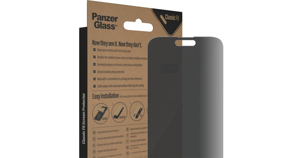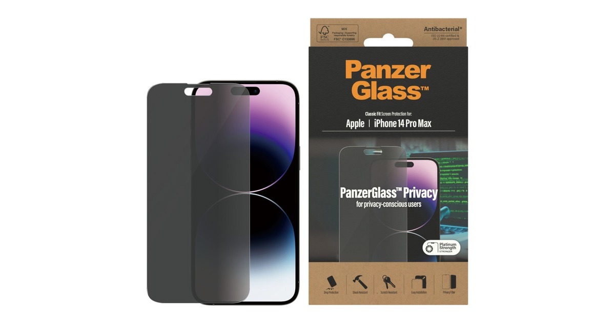 Manchmal braucht es einen starken Beschützer für das Smartphone - auf einer Party, im Club oder beim Sport. Der Classic Fit Privacy Bildschirmschutz von PanzerGlass deckt den aktiven Teil des Displays zuverlässig ab und verhindert so Bruch-, Kratz- oder Spiltterschäden, die durch Stöße auftreten können. Dabei ist er leicht anzubringen, resistent gegen Fingerabdrücke und nach ISO 22196 antibakteriell. Zusätzlich bietet die Privacy-Version per Blickschutz effektive Absicherung gegenüber neugierigen Zusehern und schützt so persönliche Nachrichten, Pin Codes und Bankdaten. Art.-Nr.: 1875580