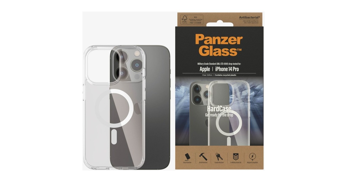 M der HardCase-Schutzhülle von PanzerGlass ist das Smartphone bestens geschützt vor ärgerlichen Kratzern und Dellen. Die Kombination aus einer festen, transparenten Rückseite und einem weicheren Rahmen aus 100% recyceltem Material bietet ein hohes Maß an Fallschutz. Die Hülle wurde unter extremen Bedingungen getestet. Dank ihres verfärbungsbeständigen Materials wird sie auch bei intensiver Nutzung lange gut aussehen. Die Hülle bietet außerdem Extraschutz vor Keimen und Bakterien, denn mit ihrem starken antibakteriellen Effekt werden bis zu 99,99% der häufigsten Oberflächenbakterien wirksam eliminiert.Art.-Nr.: 1875624