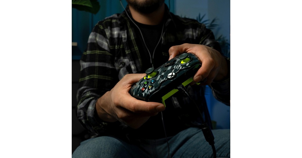 Neuzuordnung von Tasten, Auslösern und Totzonen über kostenlose PDP Control Hub App, Audio-Steuer-Elemente auf dem D-Pad, abnehmbares Kabel, Taste zum direkten Teilen von Bildern und Videos, Stummschaltung des Mikrofons über doppelten Tipp auf die Schaltfläche "Funktion" |
