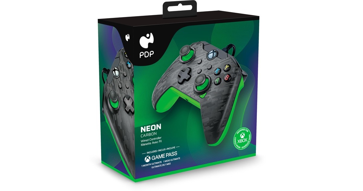 Neuzuordnung von Tasten, Auslösern und Totzonen über kostenlose PDP Control Hub App, Audio-Steuer-Elemente auf dem D-Pad, abnehmbares Kabel, Taste zum direkten Teilen von Bildern und Videos, Stummschaltung des Mikrofons über doppelten Tipp auf die Schaltfläche "Funktion" |