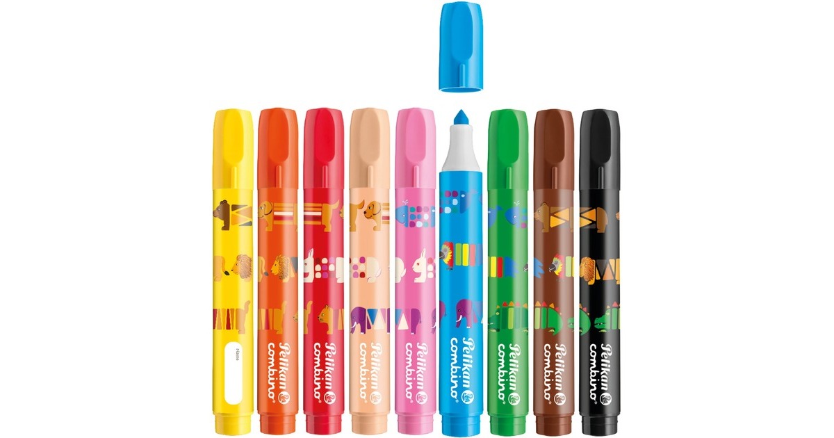 Fasermaler combino super 411, mit Tiermotiven zum kombinieren, mit konischer Spitze, 9 Farben in der Faltschachtel.Art.-Nr.: 1623752| EAN | 4012700814555 |