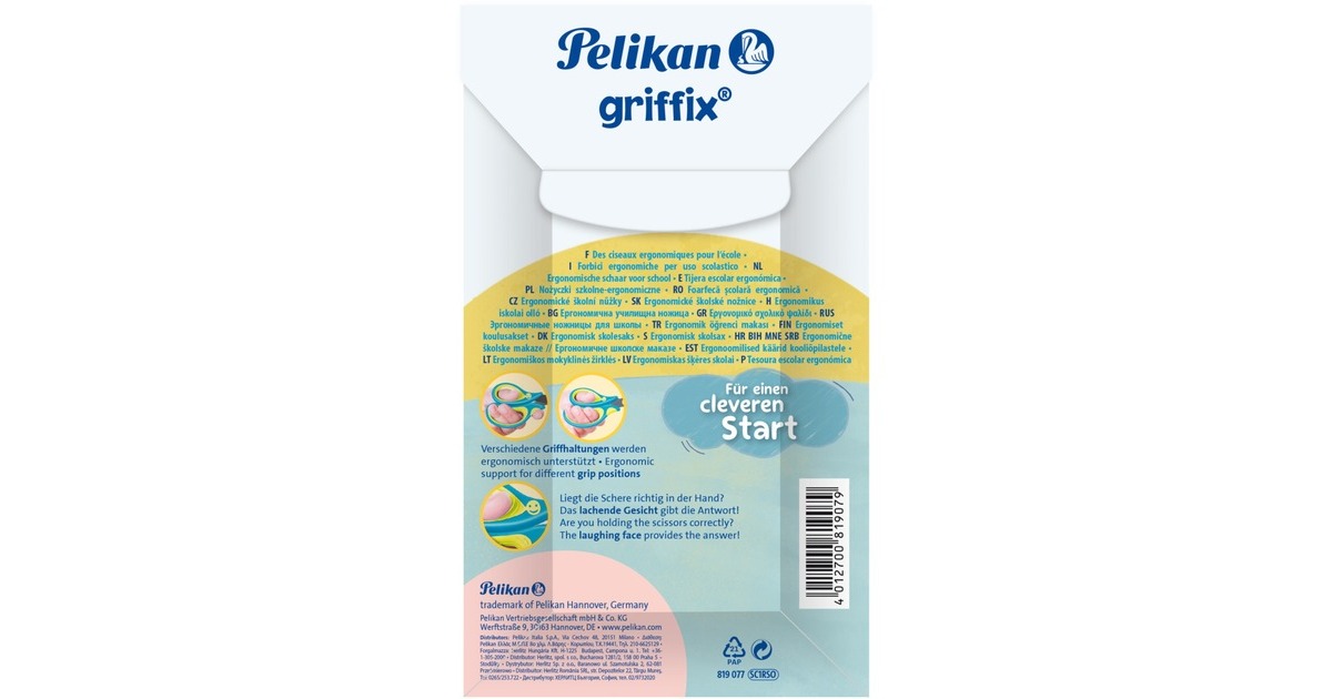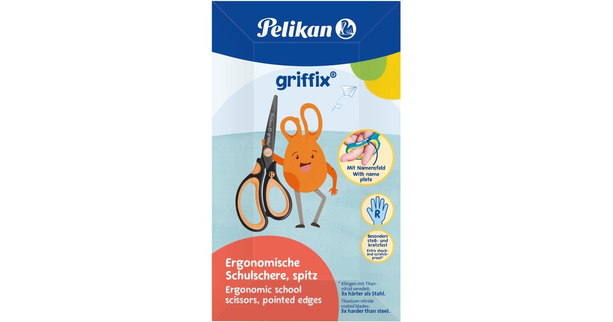 Die ergonomische Griffix Schulschere ist drei Mal härter als Stahl durch eine Titannitrid-Beschichtung. Der ergonomische Griff besteht aus hochwertigem ABS-Kunststoff und ist latexfrei. Wie beim beliebten Schreiblernsystem sorgt das lachende Griffix-Gesicht für die richtige Handhaltung. Diese Schere ist für Rechtshänder geeignet.Art.-Nr.: 1818851
