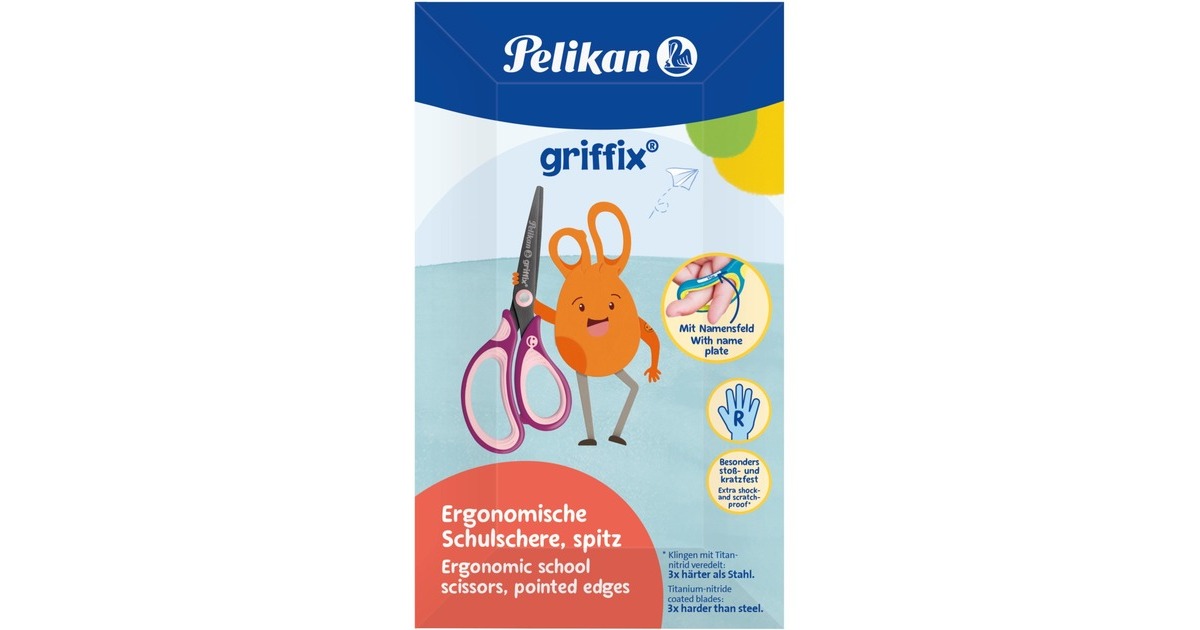 Die ergonomische Griffix Schulschere ist drei Mal härter als Stahl durch eine Titannitrid-Beschichtung. Der ergonomische Griff besteht aus hochwertigem ABS-Kunststoff und ist latexfrei. Wie beim beliebten Schreiblernsystem sorgt das lachende Griffix-Gesicht für die richtige Handhaltung. Diese Schere ist für Rechtshänder geeignet.Art.-Nr.: 1818850