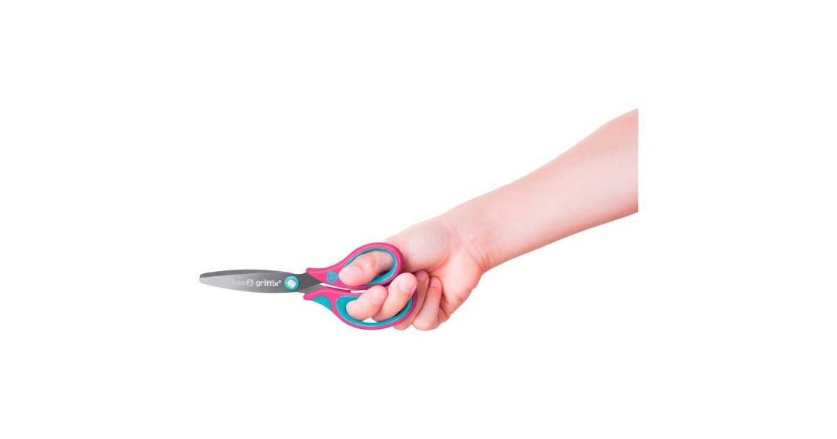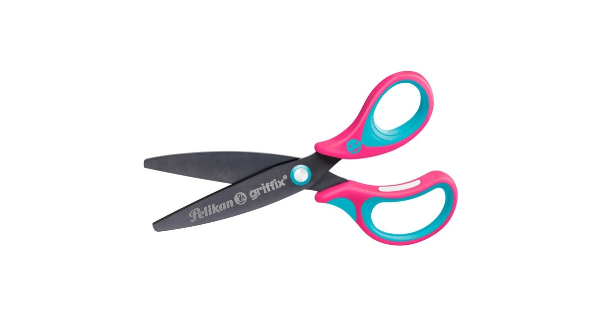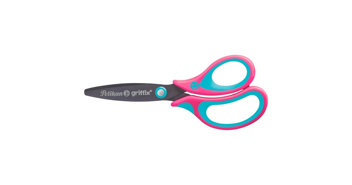Die Klinge der Pelikan griffix Schulschere SweetBerry ist dreimal härter als Stahl dank einer Titan-Nitrid-Beschichtung. Die runde Klinge eignet sich besonders gut für jüngere Kinder, die das Schneiden schon gut können. Der ergonomische Griff besteht aus hartem und weichem, hochwertigen Kunststoff und ist PVC- und Latex-frei. Wie beim beliebten griffix Schreiblernsystem sorgt das lachende griffix Gesicht für die richtige Handhaltung. Die griffix Schulschere NeonBlack ist für Rechtshänder geeignet und verfügt über ein praktisches Namensfeld.Art.-Nr.: 100008685