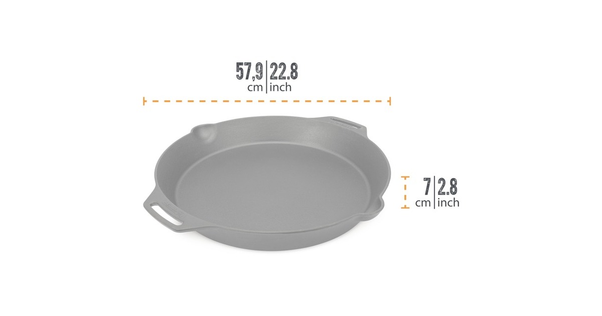 Die gusseiserne Petromax Feuerpfanne fp50h-t gehört mit ihrer exzellenten Wärmespeicherung zur Ausstattung jeder Küche. Ob in der Draußen-Küche über dem offenen Feuer gekocht wird oder auf dem Herd zuhause, man kann die Feuerpfanne sowohl auf herkömmlichen Herdplatten, auf Gasflammen, im Backofen als auch im Freien auf einer Kochstelle, über einem Lagerfeuer oder auf einem passenden Grill verwenden. Das Gusseisen mit seiner ausgezeichneten Wärmeverteilung und -speicherung ist dank der vorbehandelten Oberfläche (seasoned finish) sofort einsatzbereit und leicht zu pflegen.Art.-Nr.: 1878732