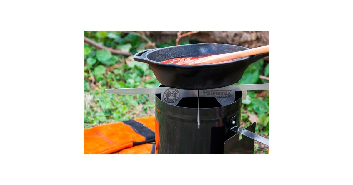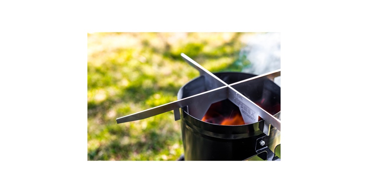 Der Petromax Feuerstand wird schnell und einfach mit einem Handgriff zusammengesteckt und auf den Anzündkamin gesteckt. Während Grillkohle und Briketts gerade erst durchglühen, können schon jetzt je nach Bedarf ein kleiner oder mittlerer Feuertopf, Feuerpfanne, Perkolator und Co. auf dem Edelstahlkreuz platziert werden. So kann die Hitze z.B. optimal zum Anbraten, Erhitzen oder Warmhalten von Speisen und Getränken genutzt werden. Das stabile Standkreuz kann jedoch noch mehr, denn es ist auch als klassischer Untersetzer verwendbar.Art.-Nr.: 1533745