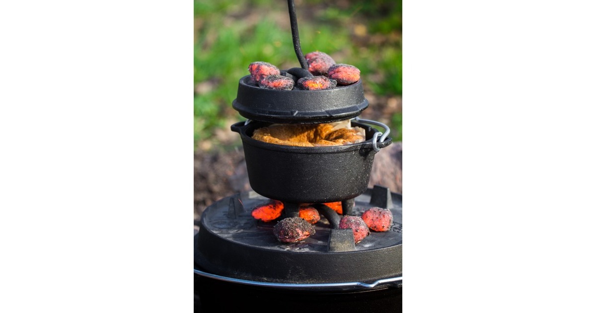 Feuertöpfe können übereinander gestapelt werden, Thermometerdurchführung im Deckel |