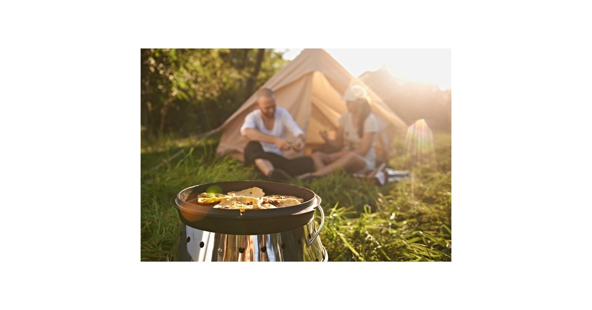 Sicheres Aufhängen am Lagerfeuer durch Einkerbung am Henkel |