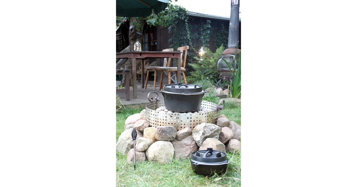Feuertöpfe können übereinander gestapelt werden, Thermometerdurchführung im Deckel |