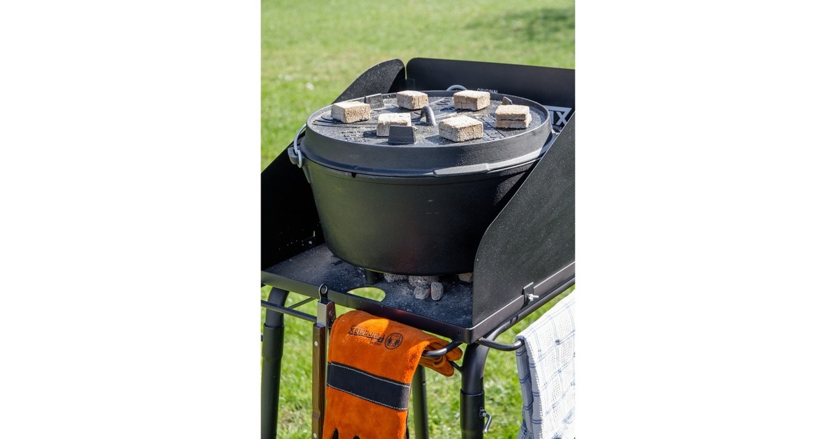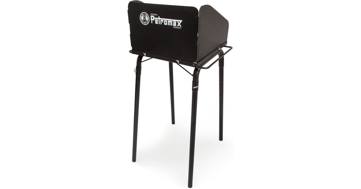 Der Petromax Feuertopf Tisch fe45 ermöglicht Draußen-Kochen im großen Stil. Er bietet eine sichere Stand- und Kochfläche für Feuertöpfe in angenehmer Arbeitshöhe von 87cm. Auf dem belastbaren Stahltisch finden je nach Größe mehrere Feuertöpfe oder Grillroste Platz. Der großzügig bemessene Windschutz ermöglicht auch im Freien energie- und kohleeffizient zu kochen. Die vier Standbeine können alternativ auch abgebaut und der Tisch auf eine beliebige, hitzeresistente Unterlage gestellt werden. Vorn und an den Seiten bieten Bügel Platz zum Aufhängen von Kohlezange, Grillhandschuhen und Co. Zum Säubern lassen sich Asche und Kohlereste einfach durch eine Aussparung im vorderen Bereich der Arbeitsfläche ausfegen.Art.-Nr.: 1533663
