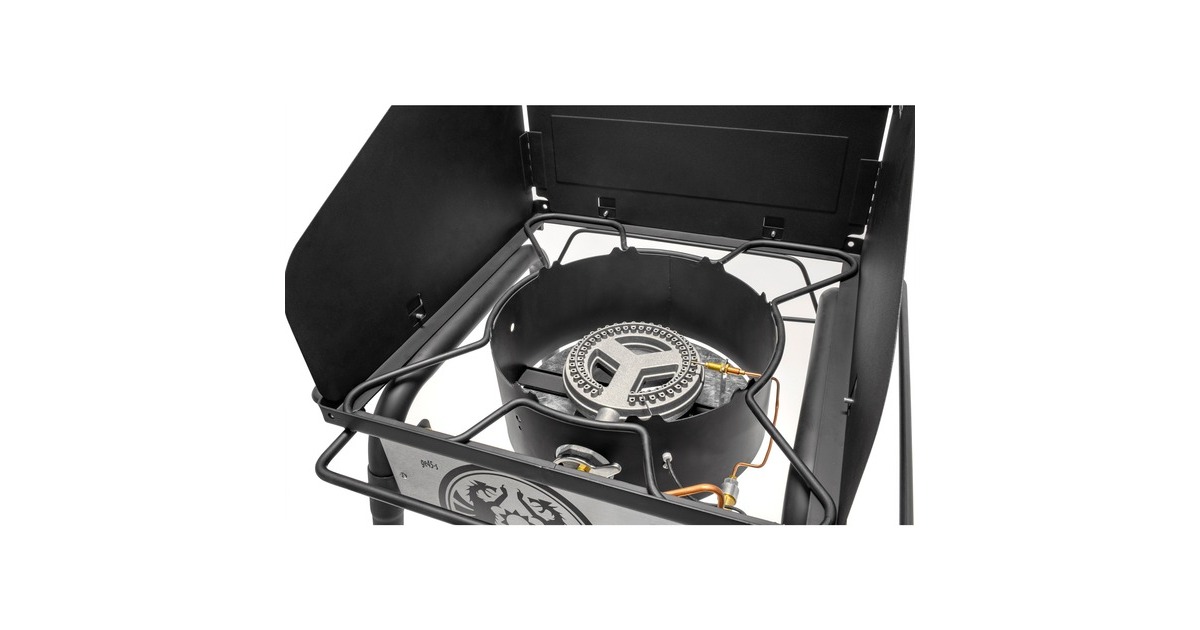 Der Petromax Gastisch ge45-s bringt direkte Kochhitze auf Knopfdruck und trumpft mit einem leistungsstarken 5 kW Brenner auf. Die Konstruktion ist speziell auf die Verwendung von robuster Kochausrüstung für draußen ausgelegt und ermöglicht ein bequemes Zubereiten von Mahlzeiten auf Hüfthöhe. Die Zündung des ge45-s erfolgt über einen kombinierten Bedienknopf mit integriertem Piezozünder. Dieser sorgt nicht nur für den entscheidenden Funken, sondern macht die stufenlose Reglung der Gasflamme möglich. Besonders sicher: Sollte die Flamme versehentlich verlöschen, so unterbricht die automatische Flammenüberwachung die Gaszufuhr und minimiert das Risiko einer Verpuffung. Der Gastisch wird mittels mitgelieferten 50 mbar Druckreglers mit Membransteuerung an handelsübliche Propangasflaschen angeschlossen, was einen gleichbleibenden Gasdruck und eine zuverlässig brennende Gasflamme ermöglicht. Mit einer maximalen Traglast von 80 kg stemmt der ge45-s auch randvolle Feuertöpfe und -pfannen und bietet dank der vier leicht abnehmbaren Standfüße gleichzeitig vielfältige Einsatzgebiete auch außerhalb des heimischen Gartens.Art.-Nr.: 1654390